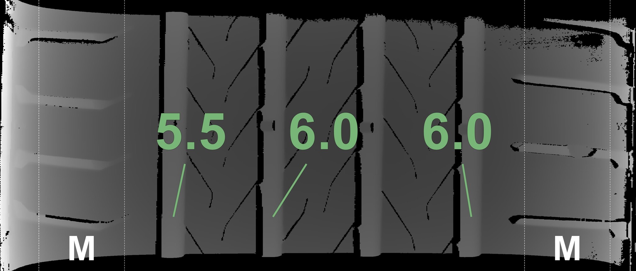 | Condition | Profile depth | DOT | Front Right | Used | 5.0 mm | 5023 |