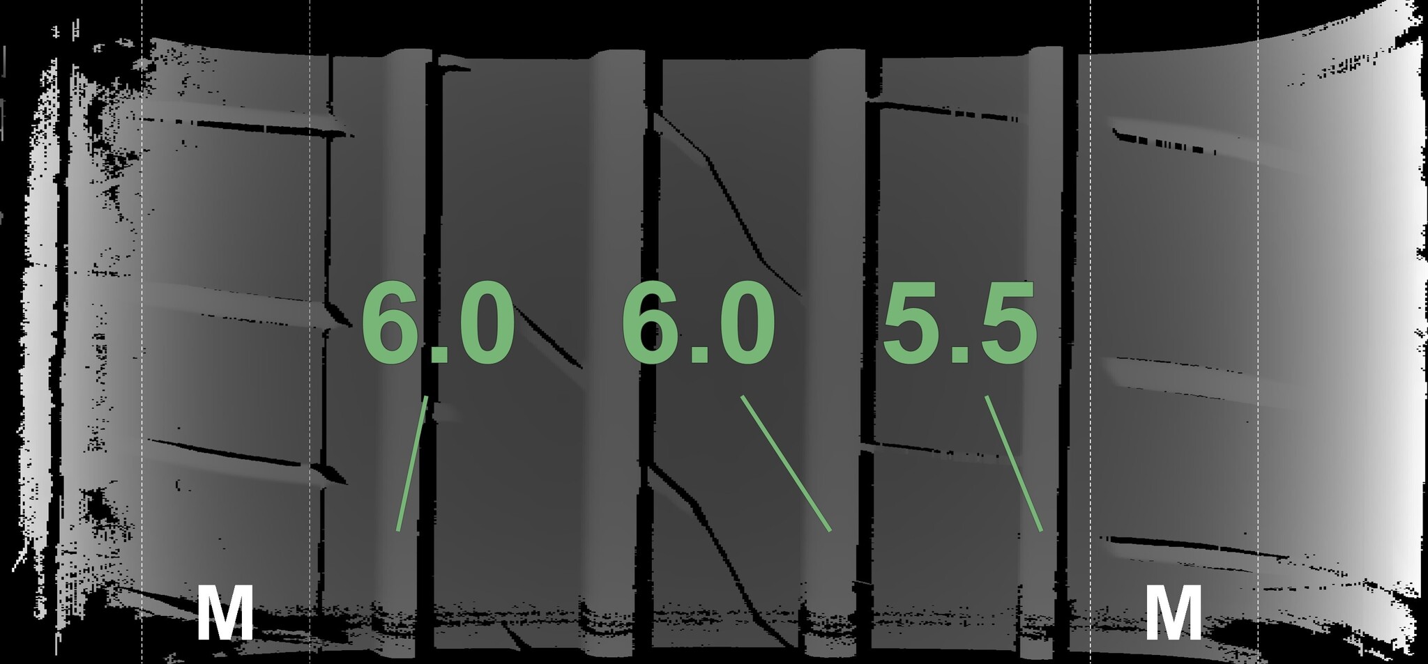 | Condition | Profile depth | DOT | Front Left | Demo studs still visible | 5.5 mm | 3424 |