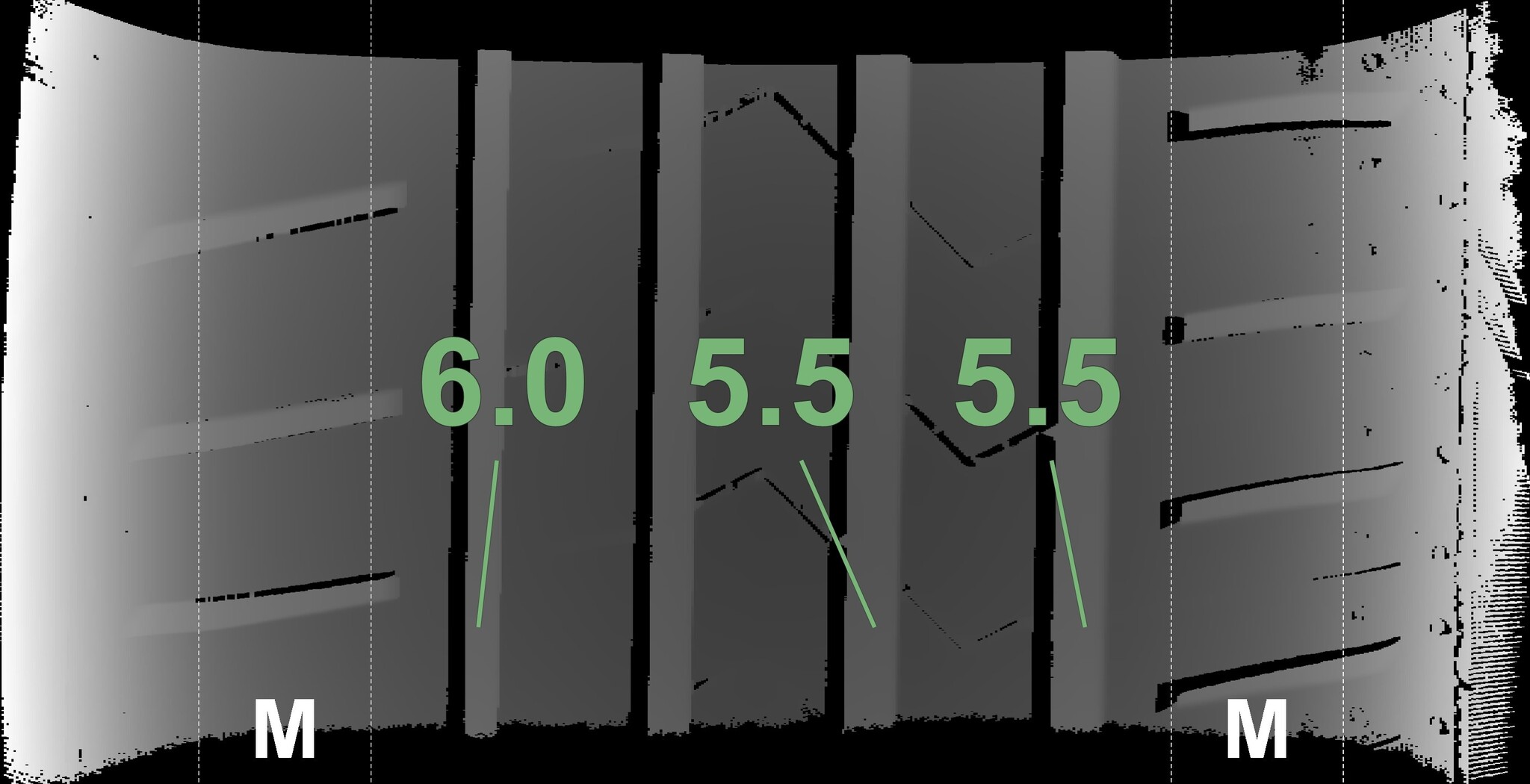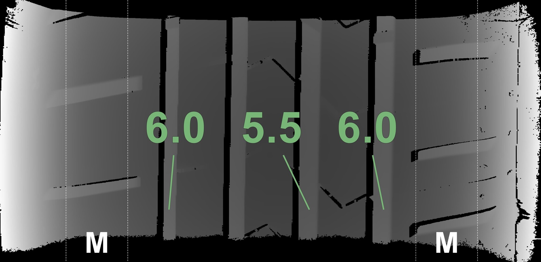 | Condition | Profile depth | DOT | Rear Left | Used | 5.7 mm | 1125 |