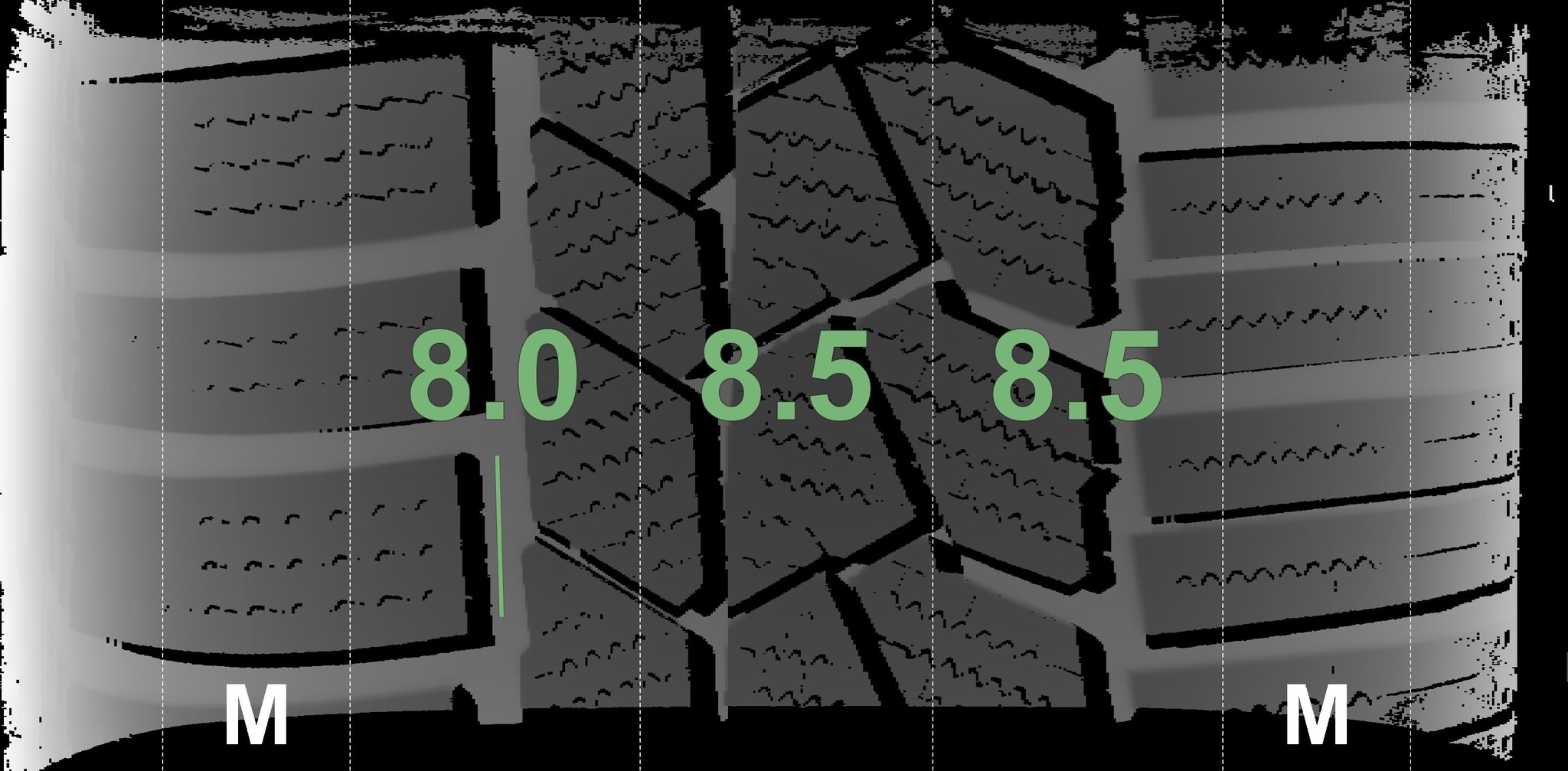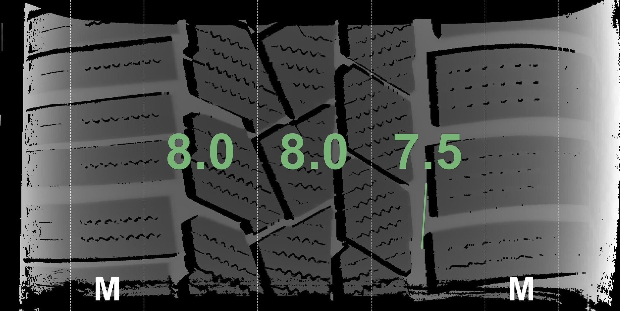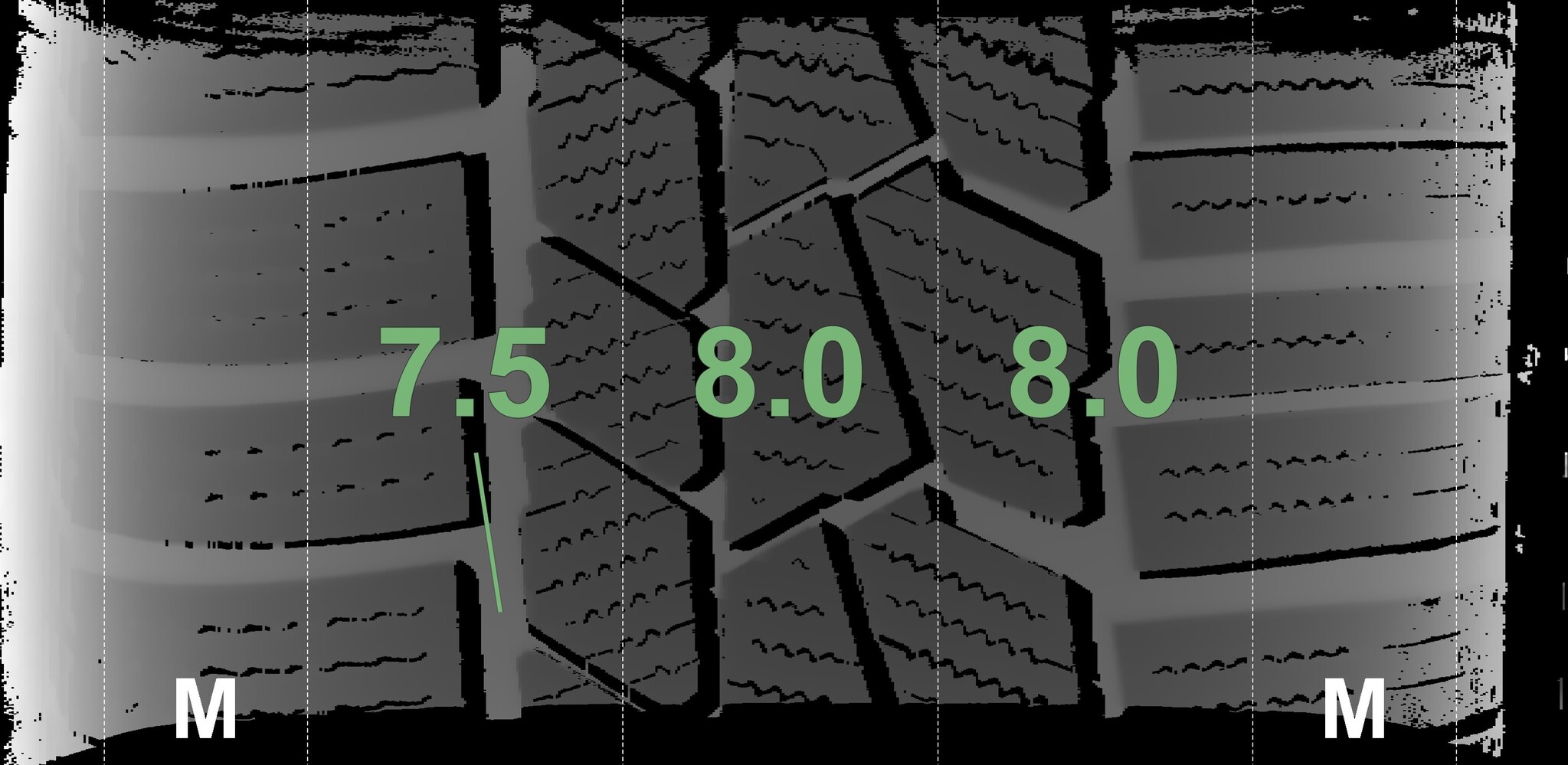 | Condition | Profile depth | DOT | Rear Left | Demo dots still visible | 8.3 mm | 2223 |