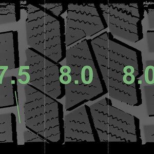 The measured tread depths and details of the rims are shown above.