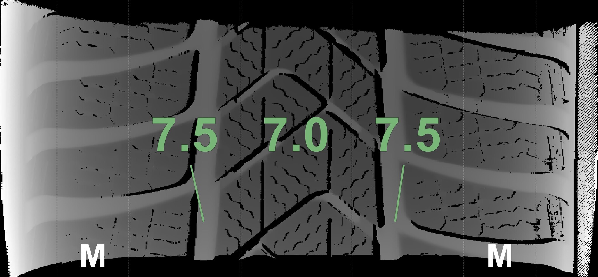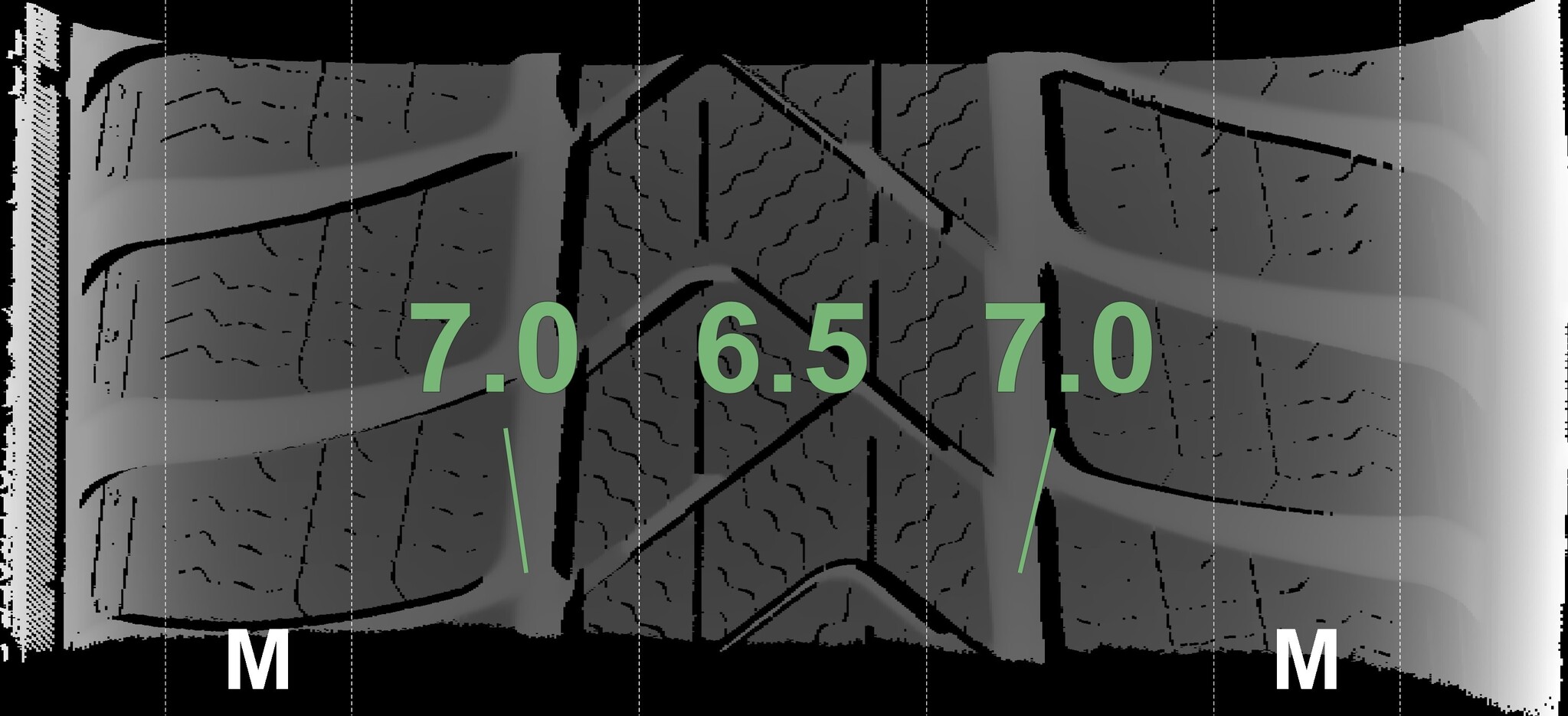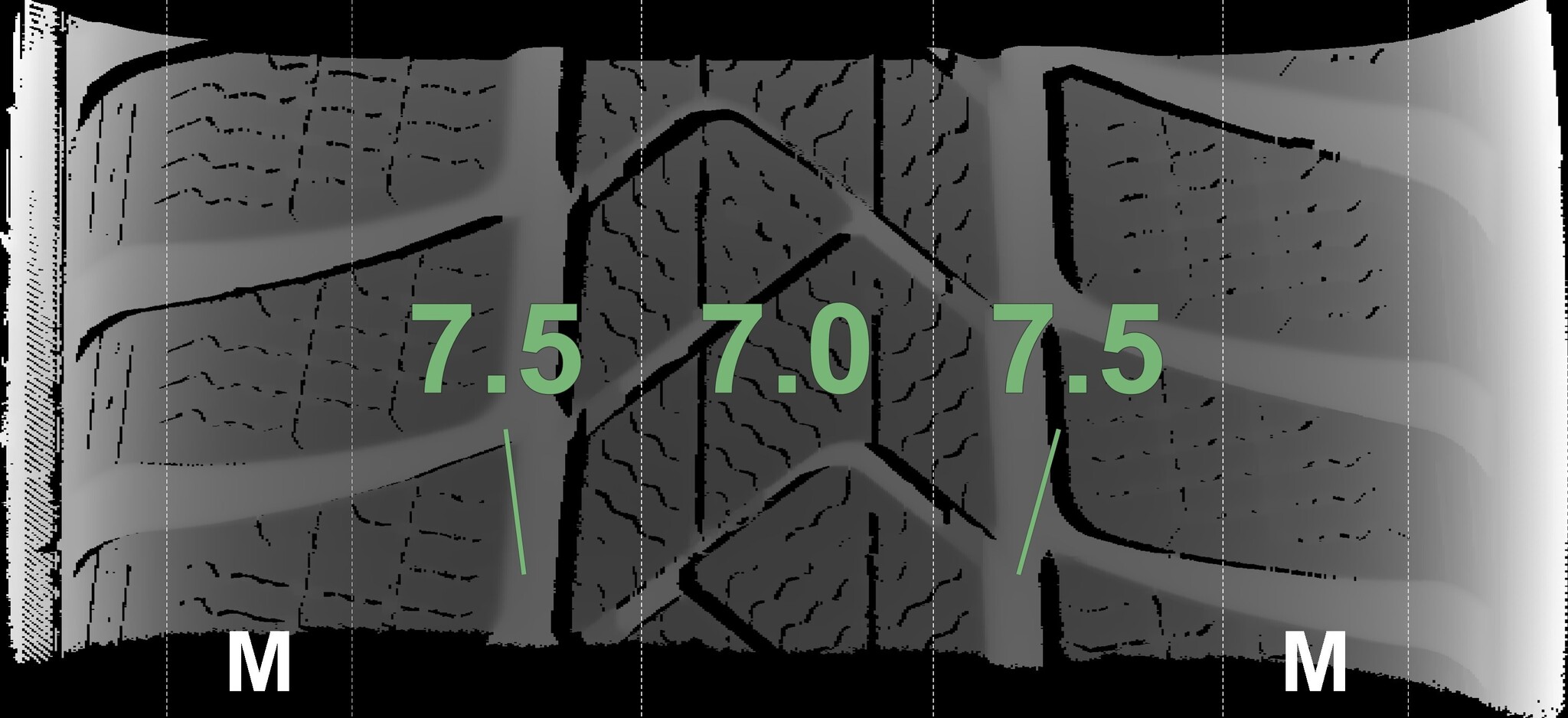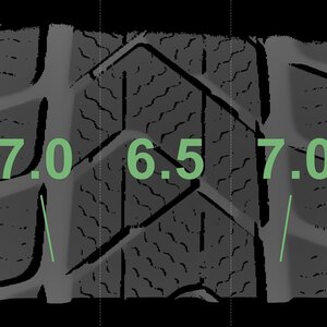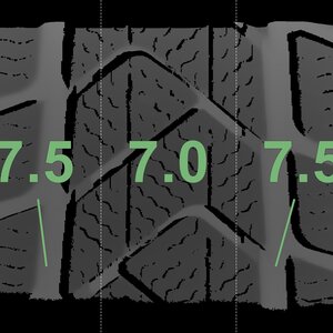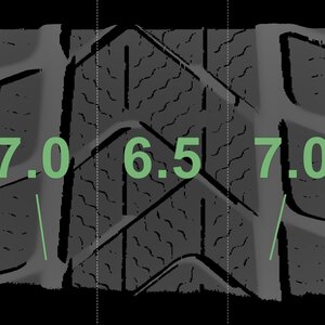 The measured tread depths and the details of the rims are shown above.