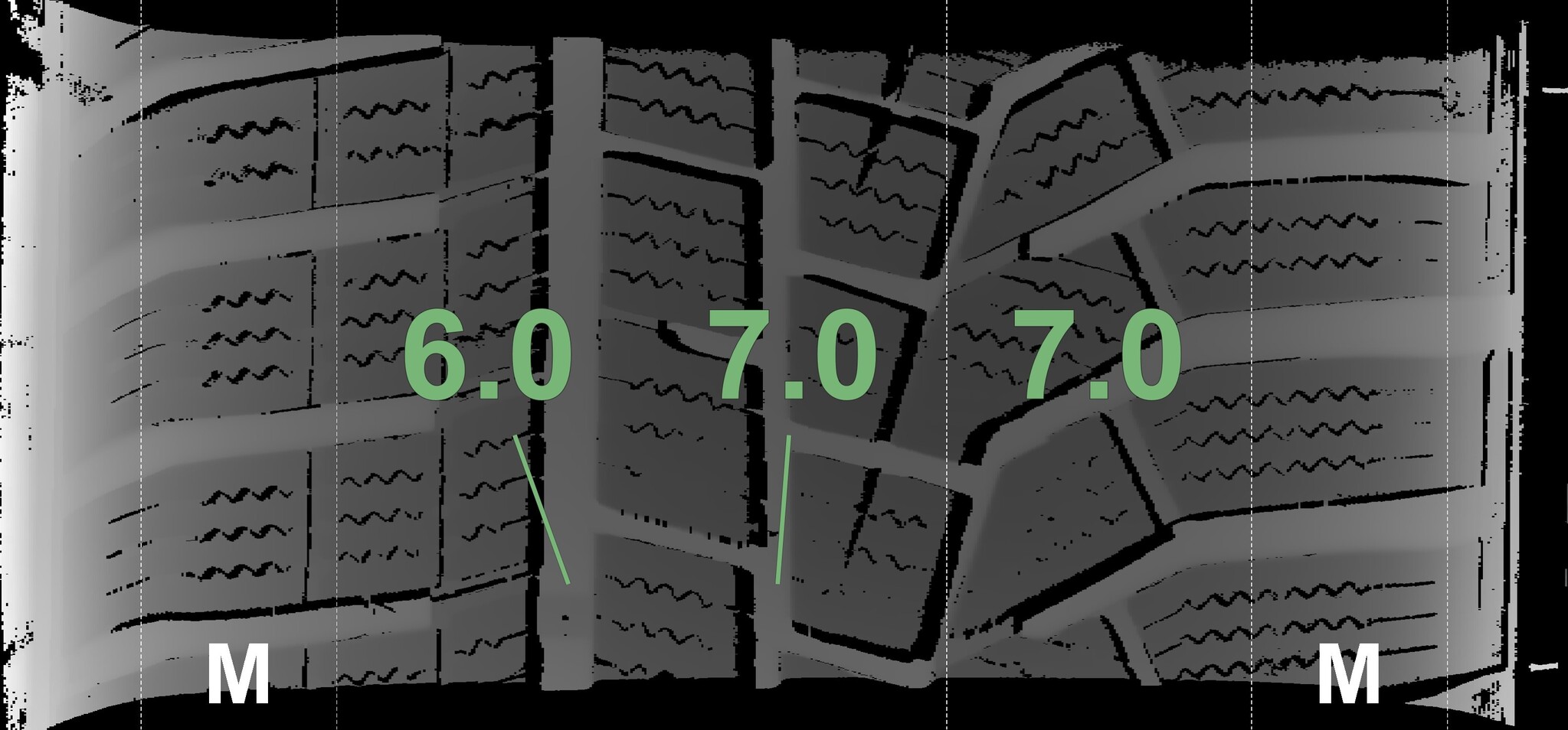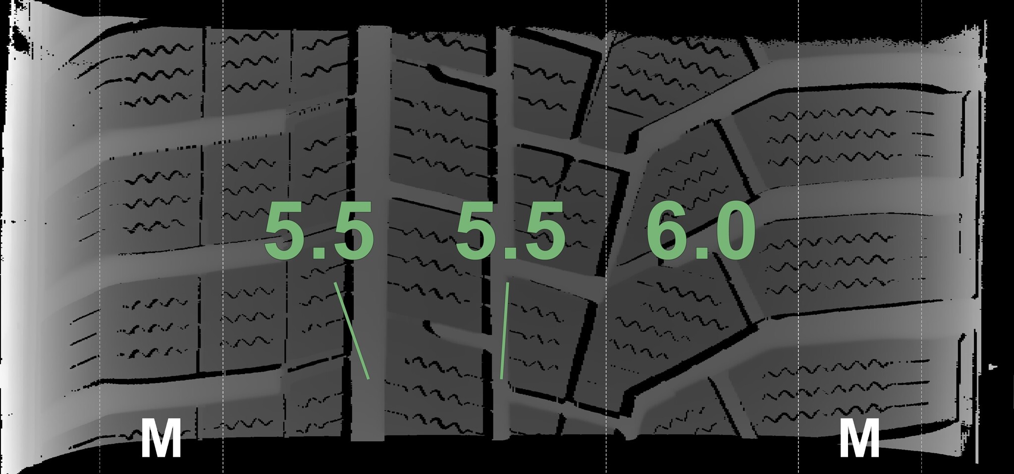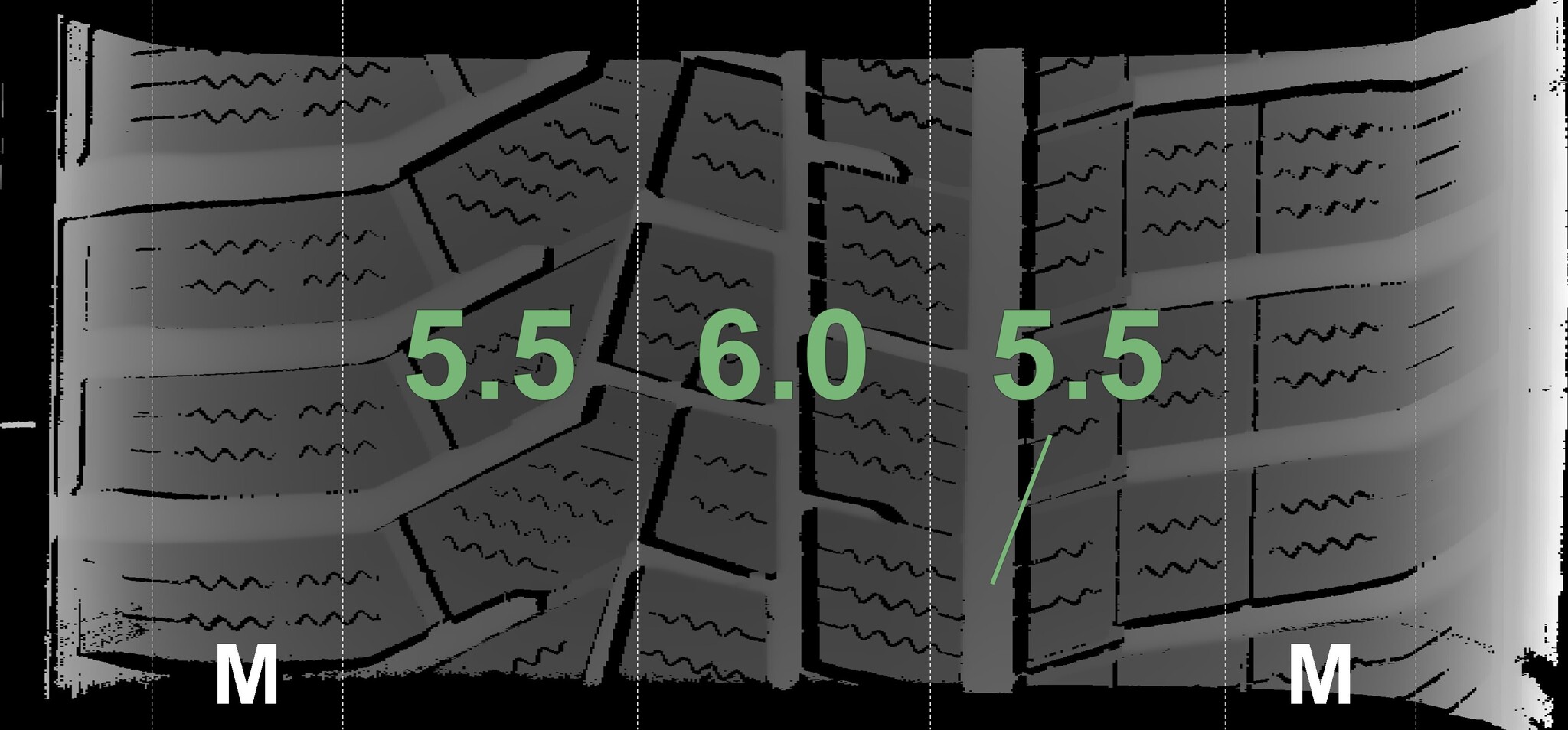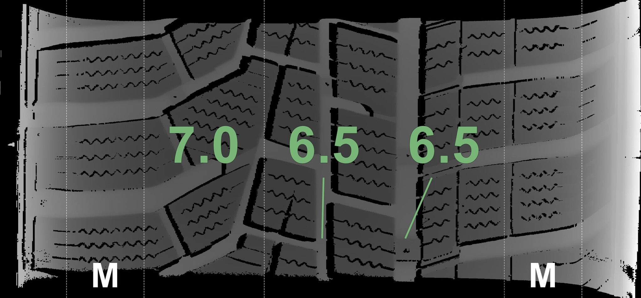 The measured tread depths and details of the rims are shown above.