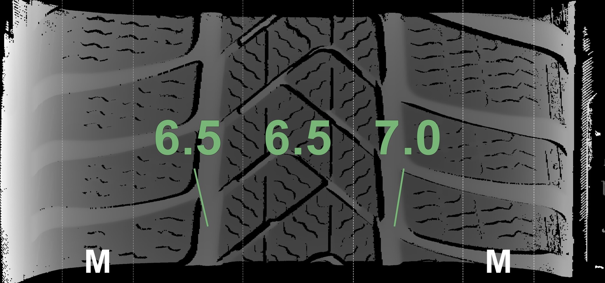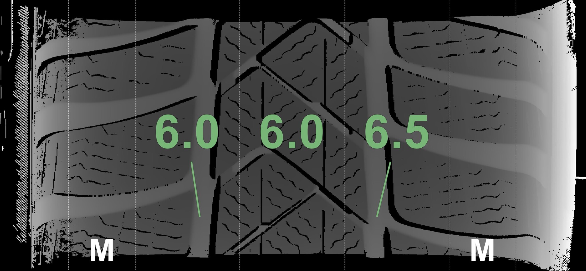 | Condition | Profile depth | DOT | Rear Left | Used | 6.5 mm | 4921 |