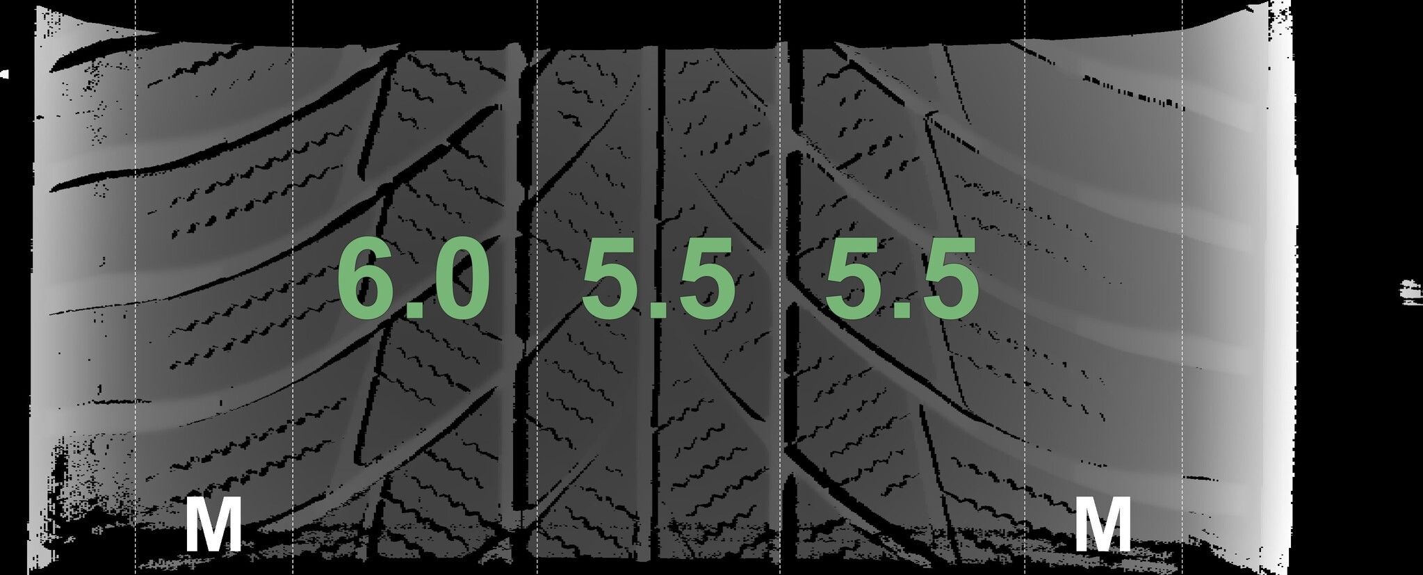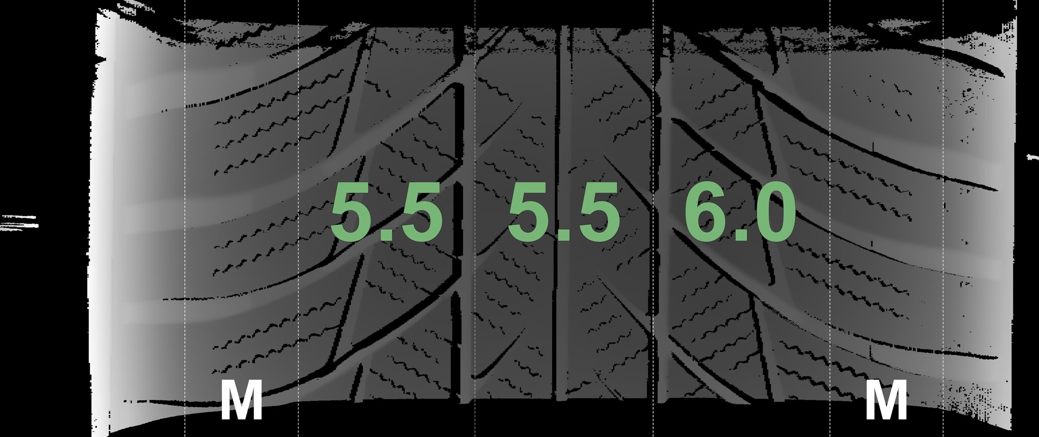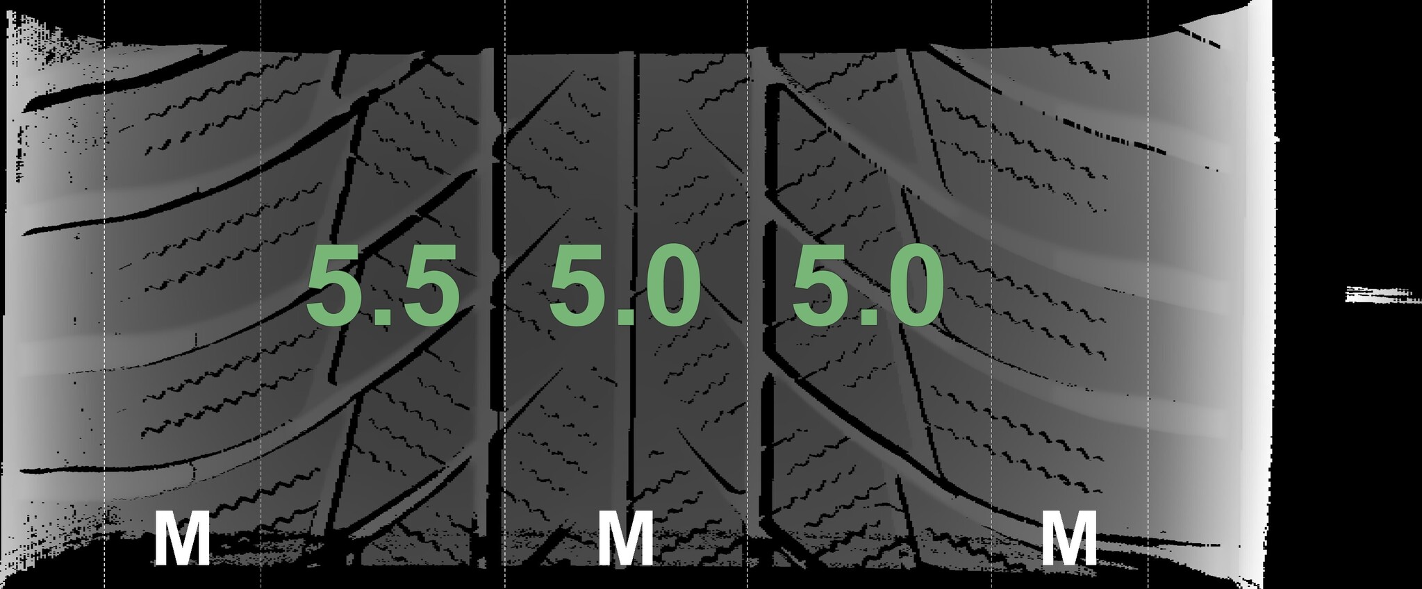 | Condition | Profile depth | DOT | Front Left | Used | 5.7 mm | 4019 |