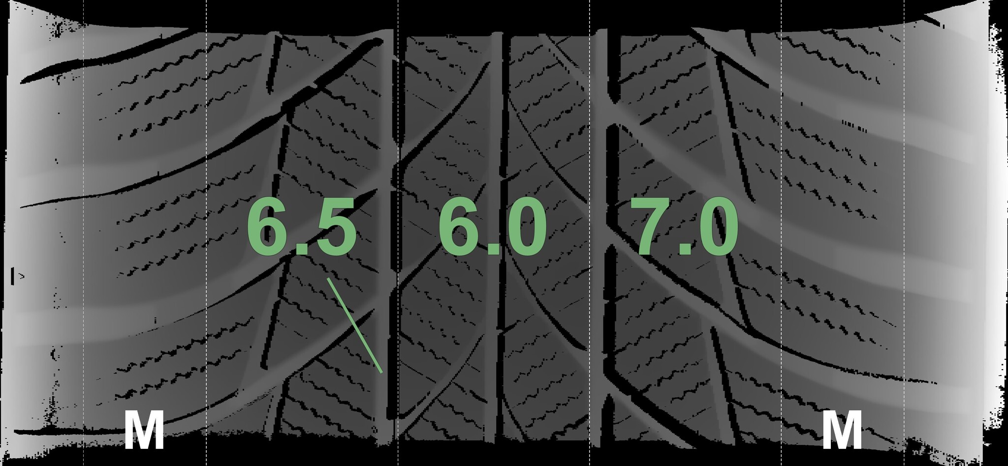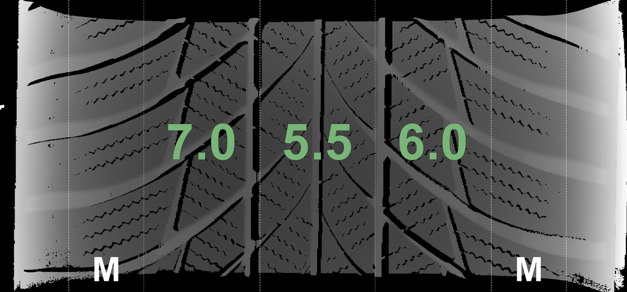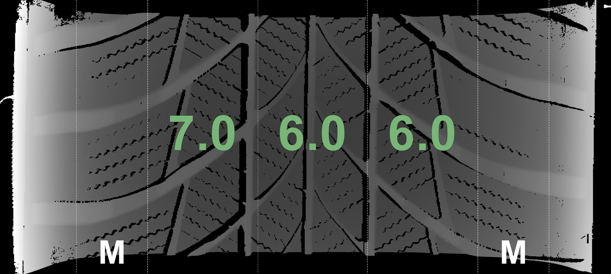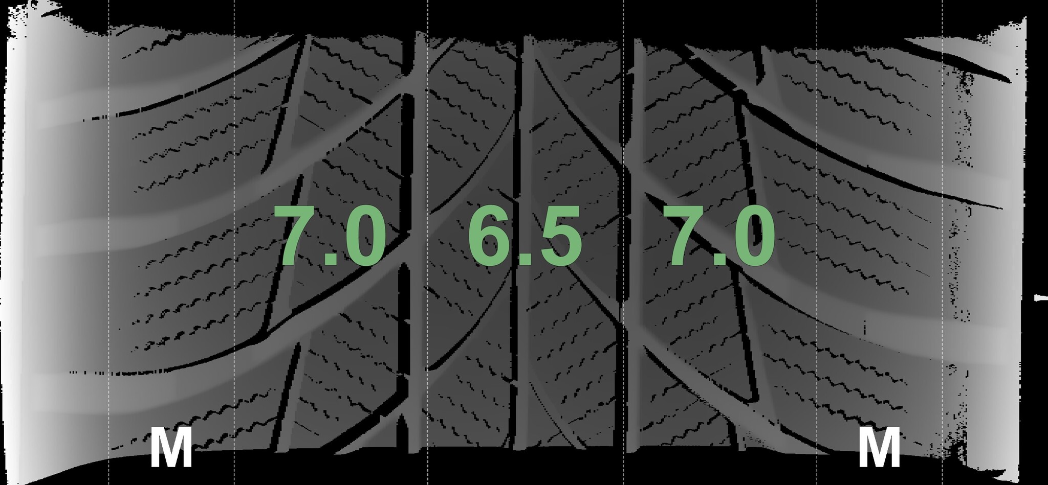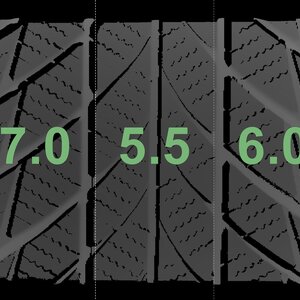The measured tread depths and the details of the rims are shown above.
