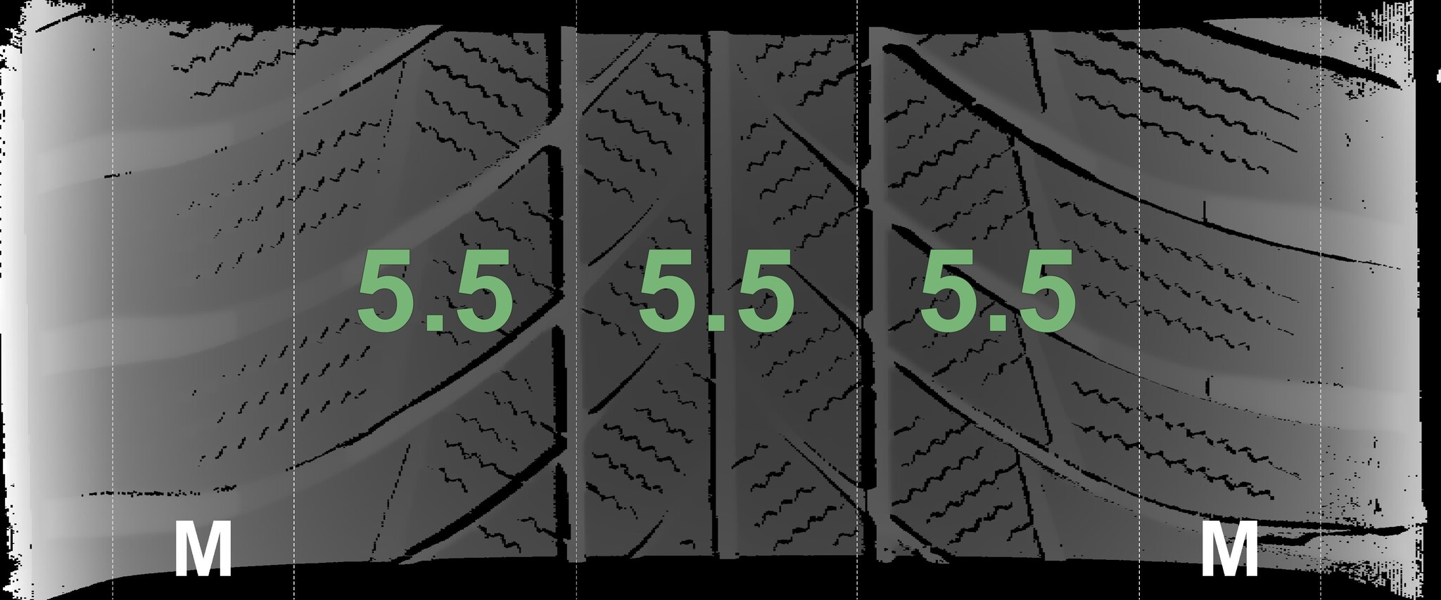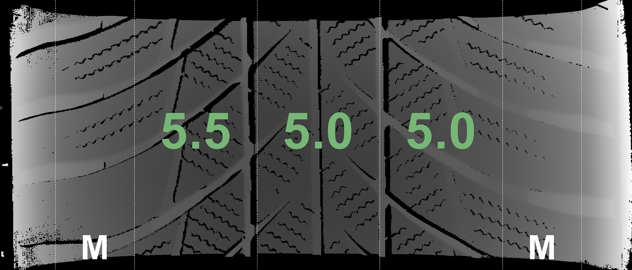| Condition | Profile depth | DOT | Rear Left | Used | 5.5 mm | 1819 |