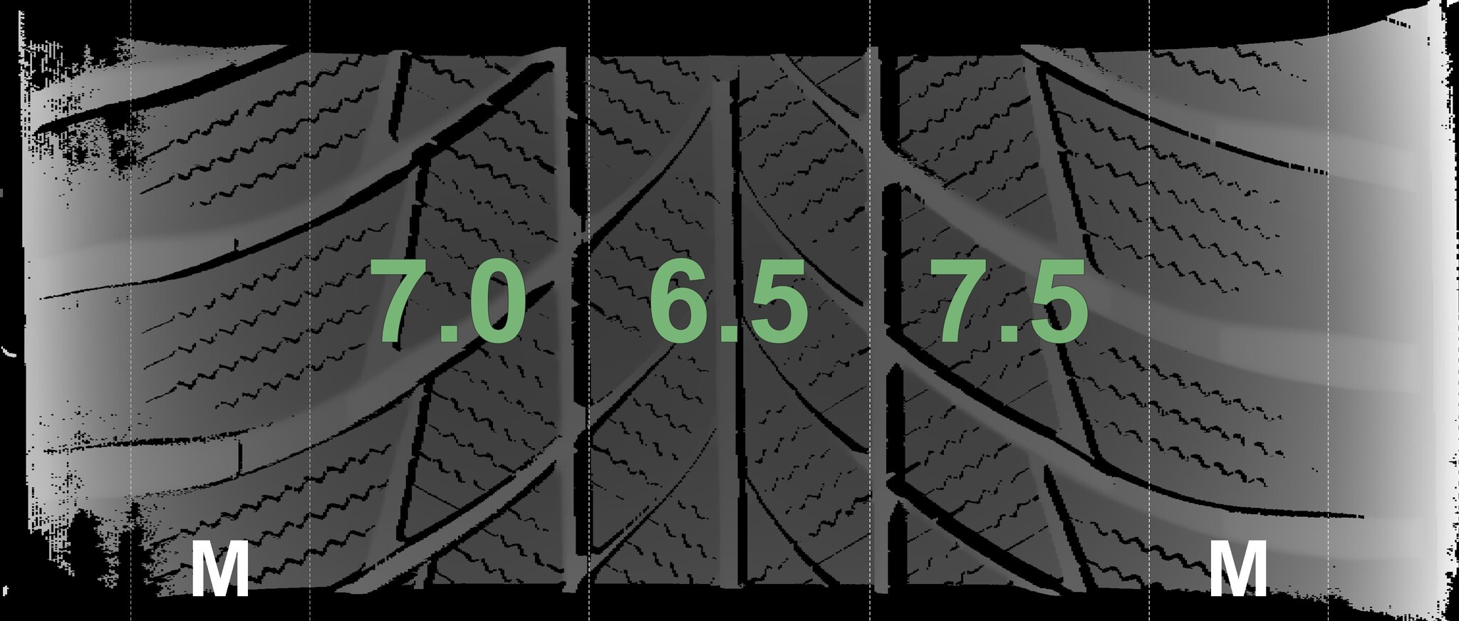 | Condition | Profile depth | DOT | Front Right | Used | 6.5 mm | 4319 |