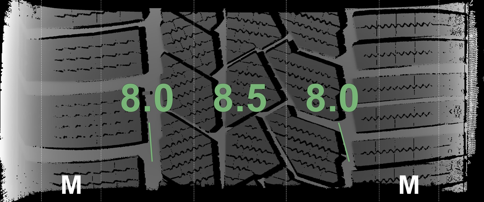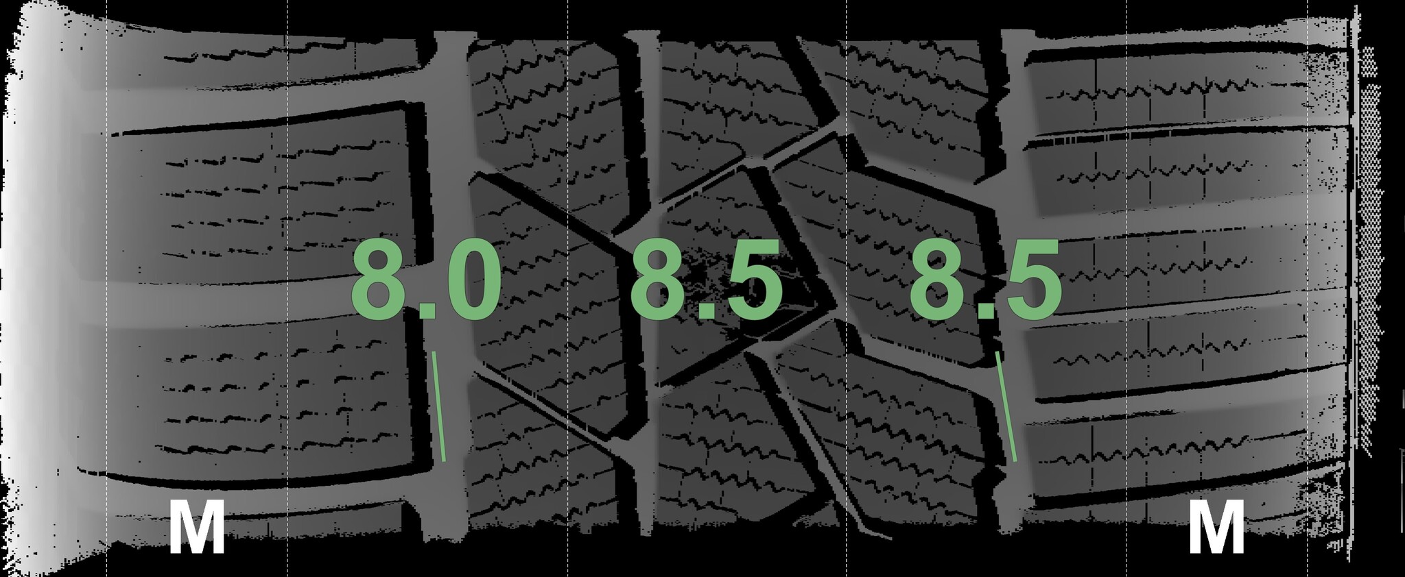 Condition | Profile depth | DOT | Front Right | New | 8.0 mm | 3623 |