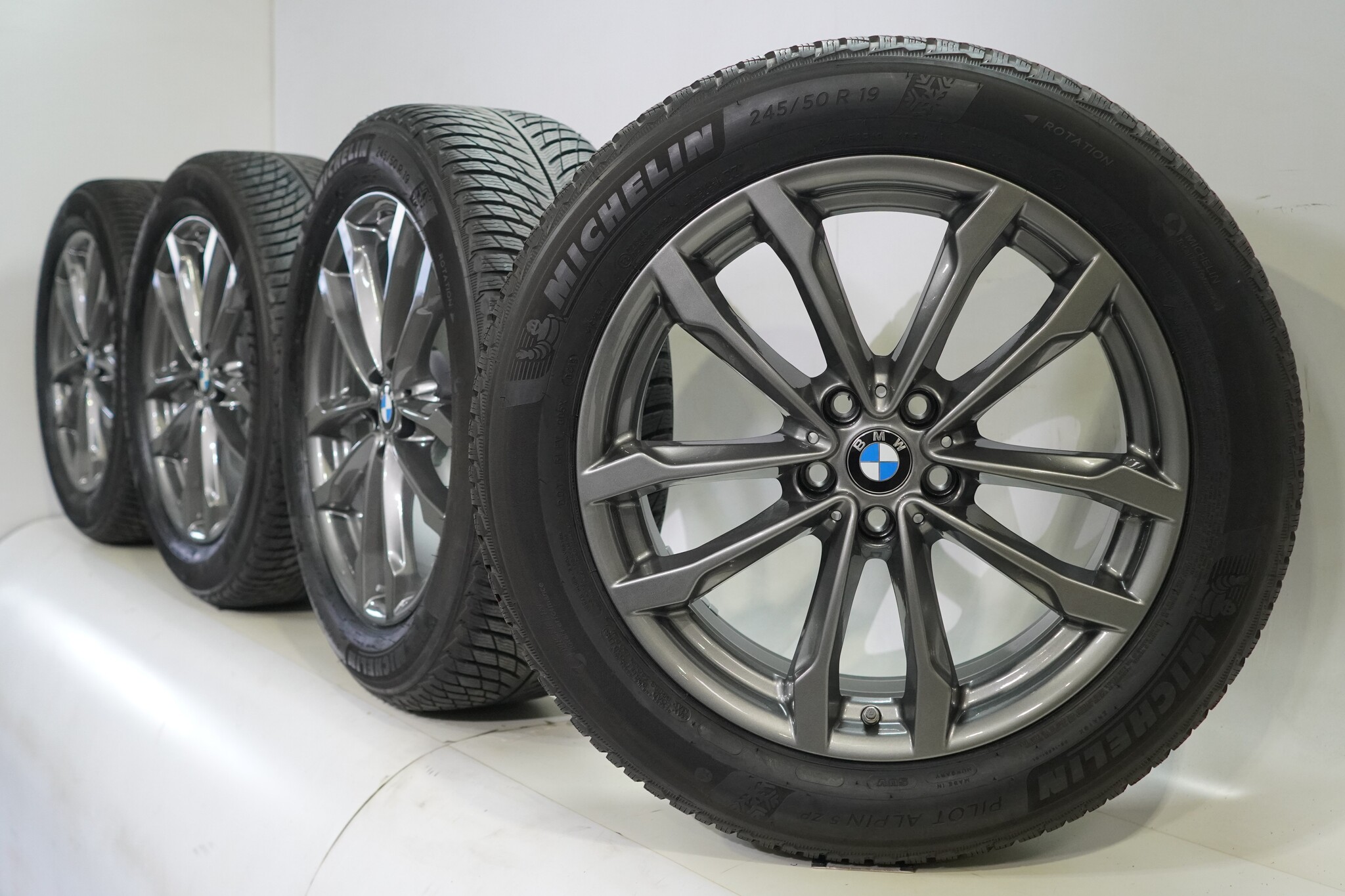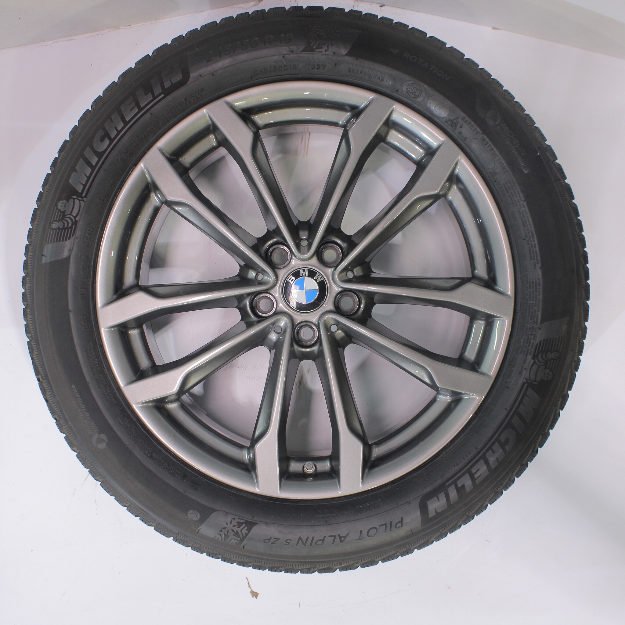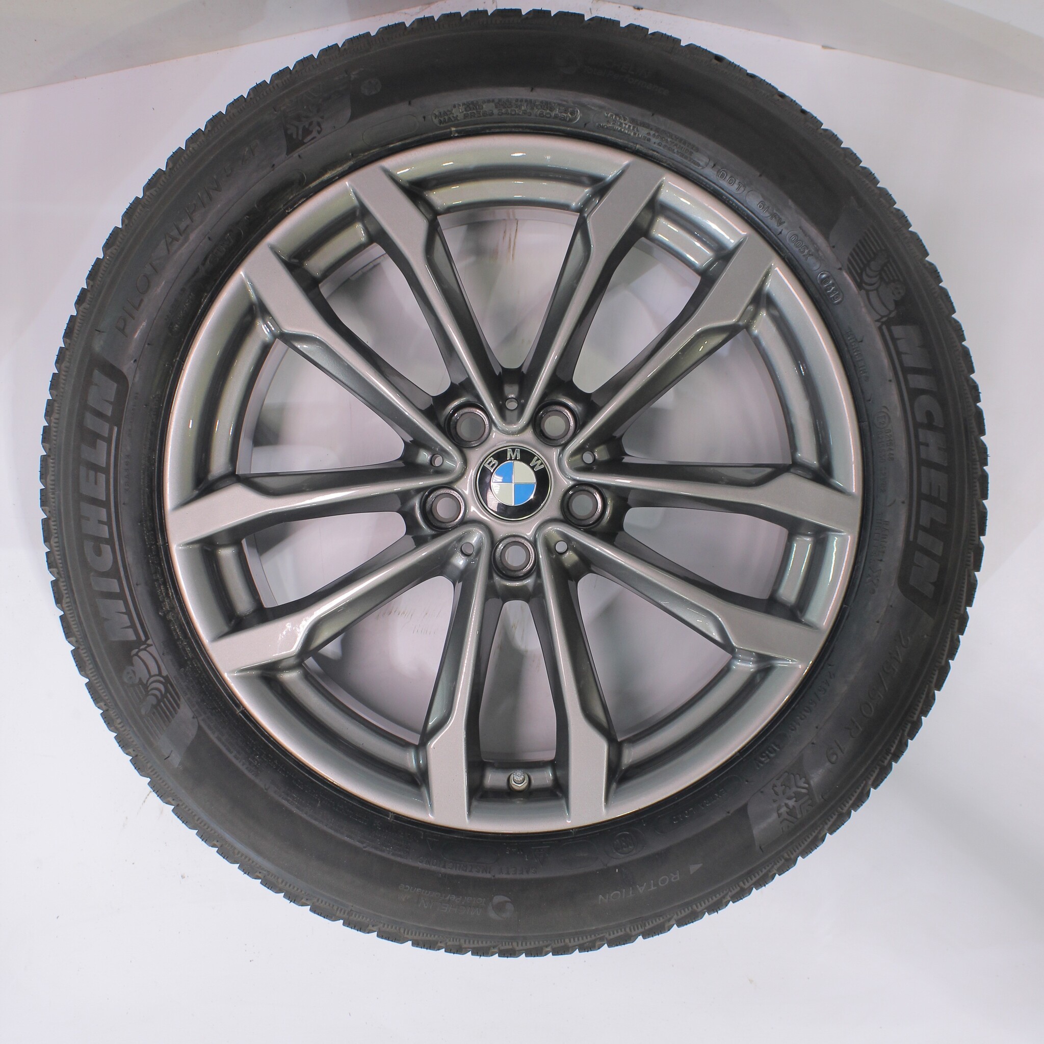 Original BMW wheelset, styling 691, 19-inch rims with Michelin Pilotalpin 5 Runflat Winter Tires. These rims are original BMW brand rims and suitable for: BMW X3 X4 G01 G02.