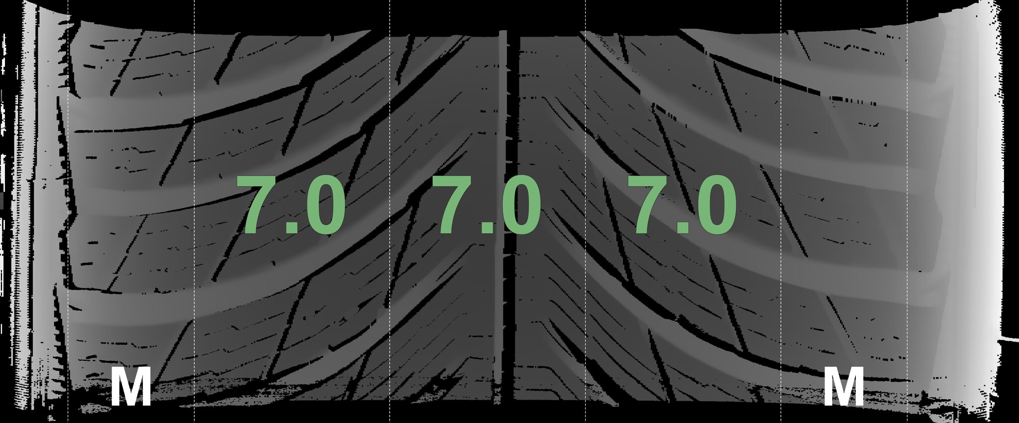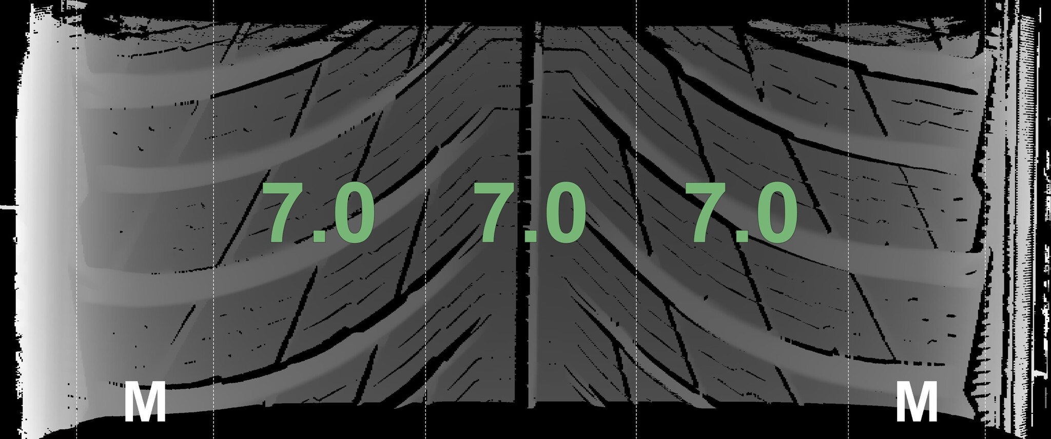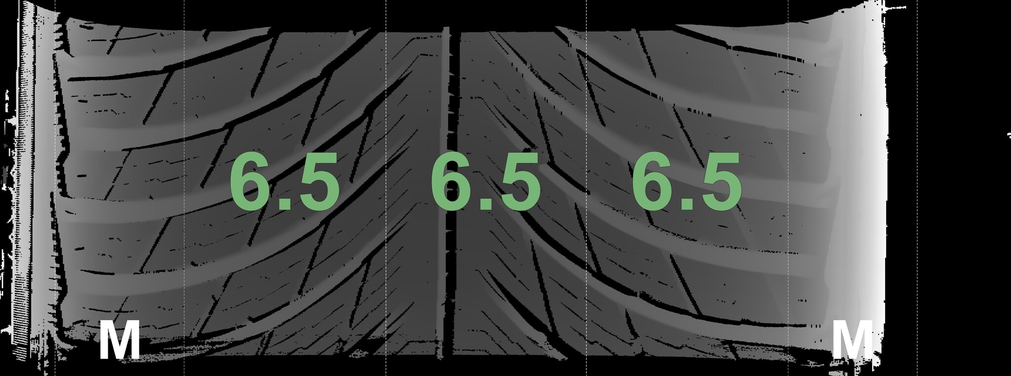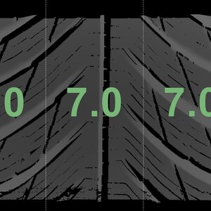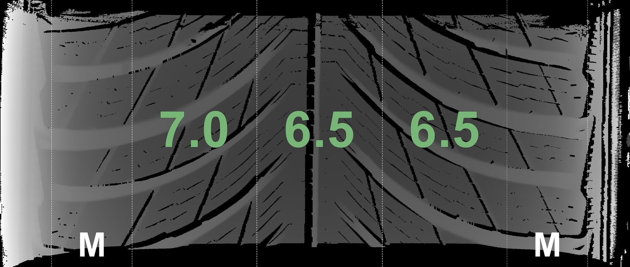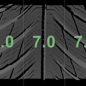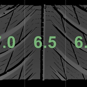 The measured tread depths and the details of the rims are shown above.