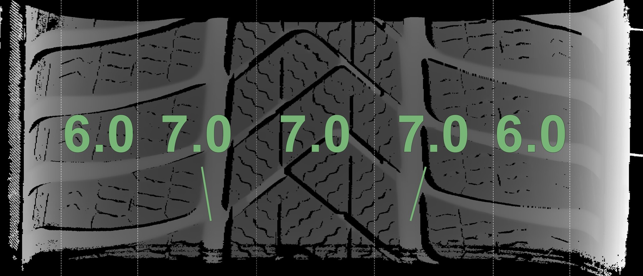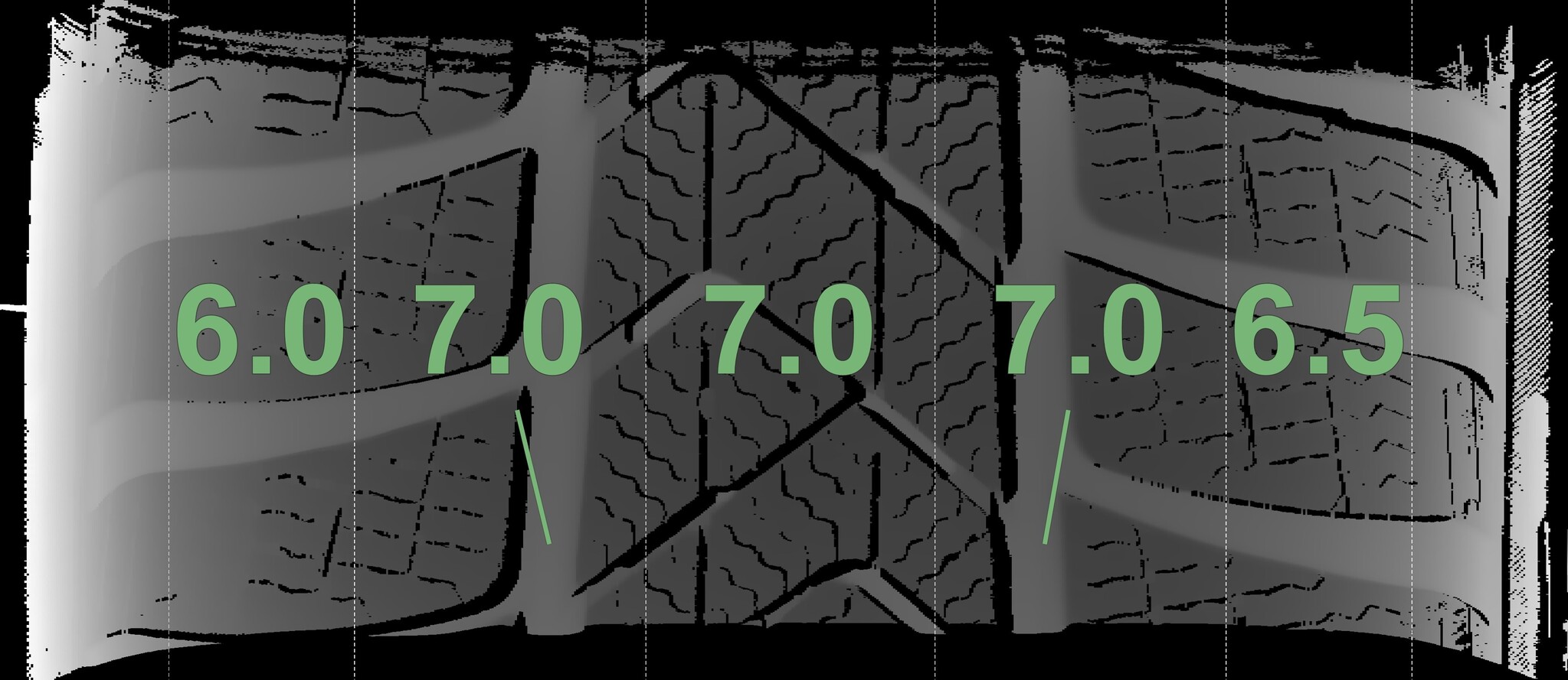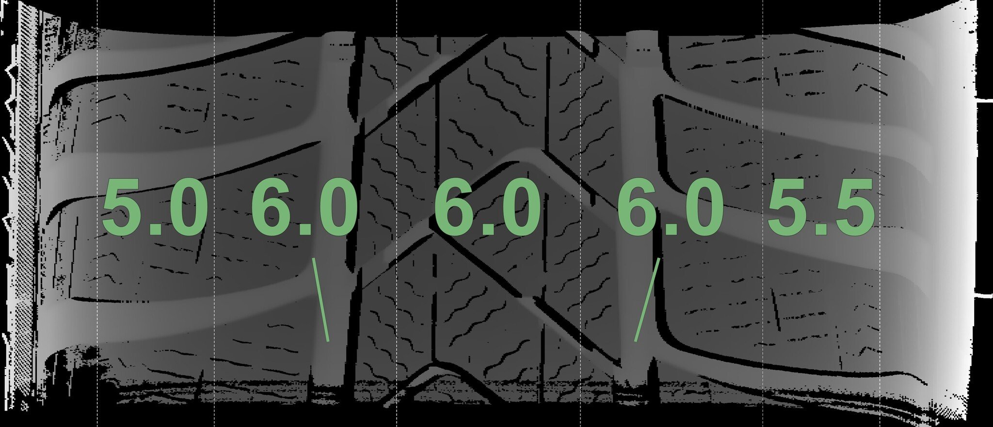 | Condition | Profile depth | DOT | Front Left | Used | 6.5 mm | 2122 |