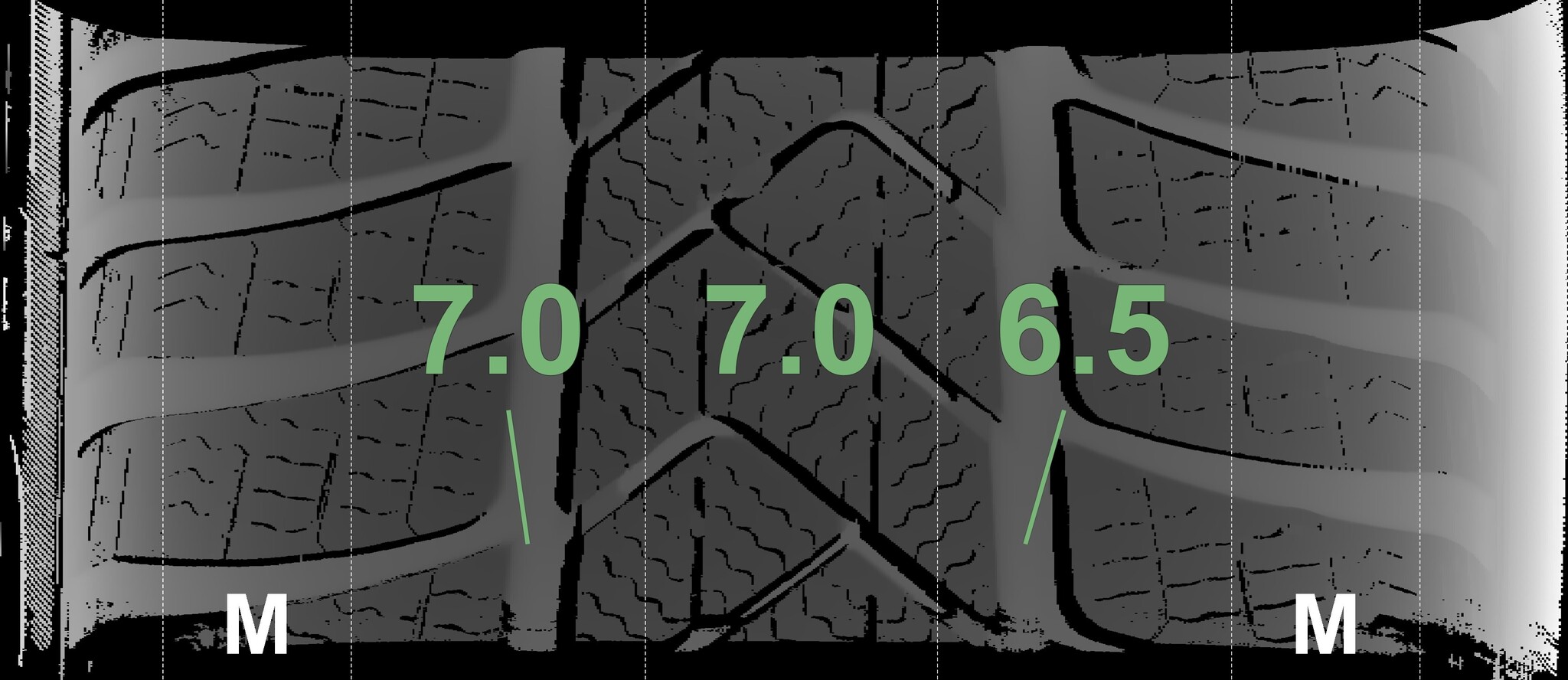 | Condition | Profile depth | DOT | Front Left | Used | 6.2 mm | 4322 |