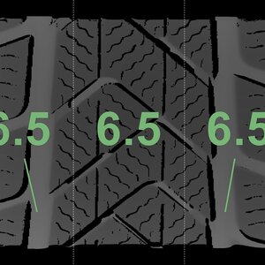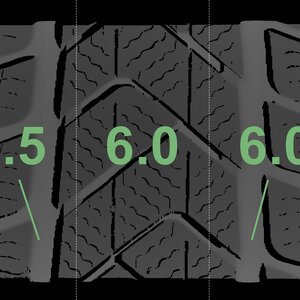 The measured tread depths and the details of the rims are shown above.