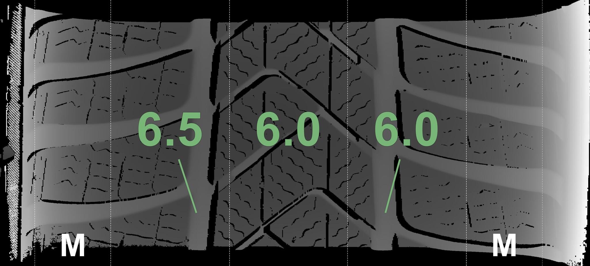 | Condition | Profile depth | DOT | Front Left | Used | 6.5 mm | 3620 |