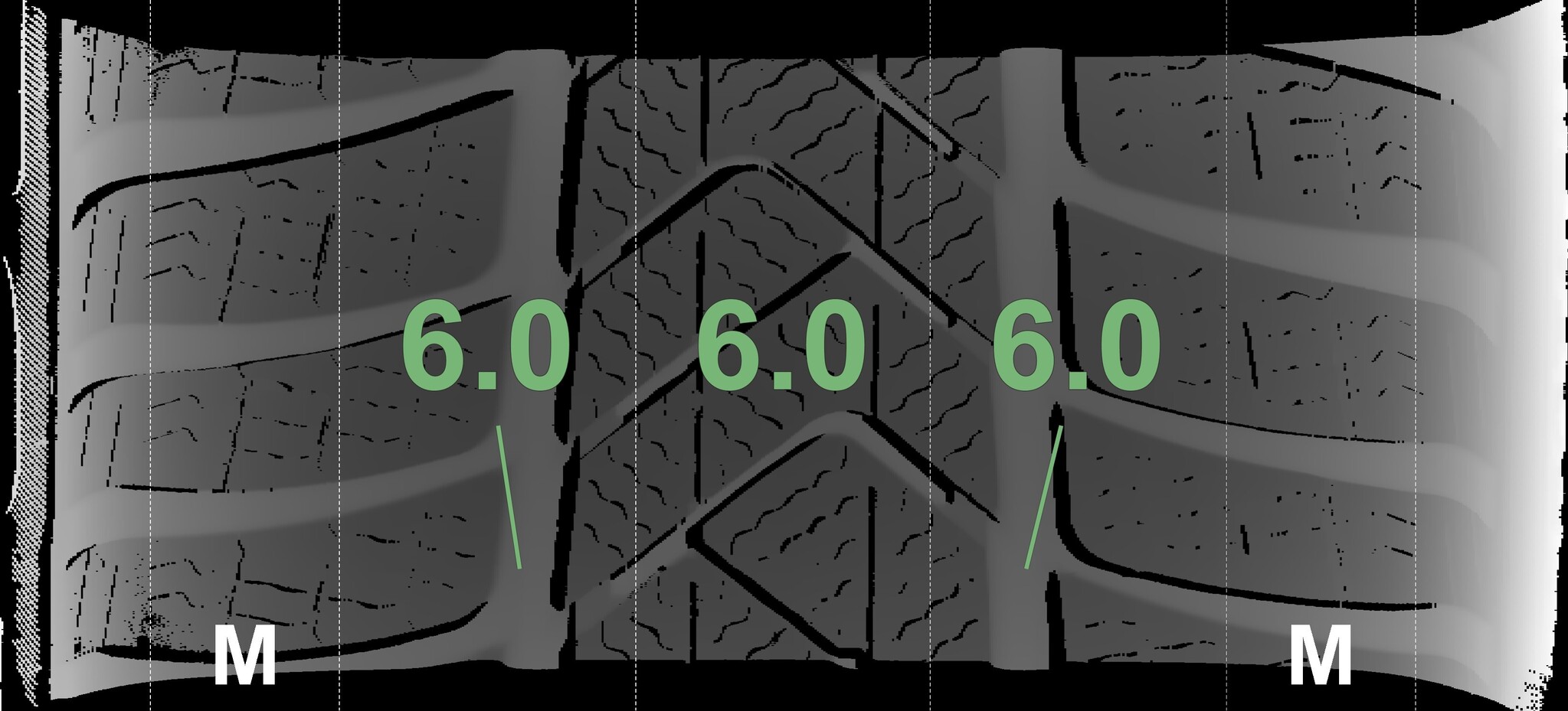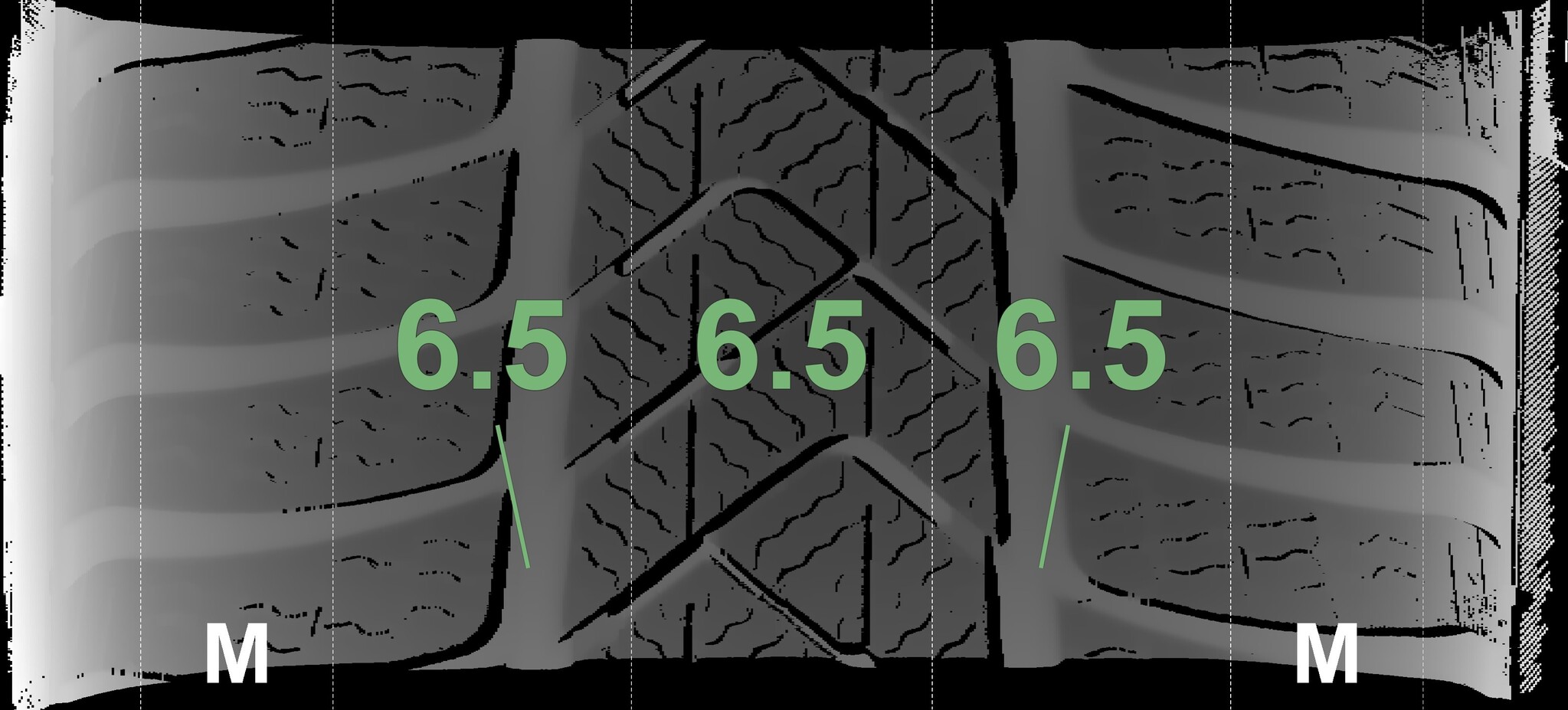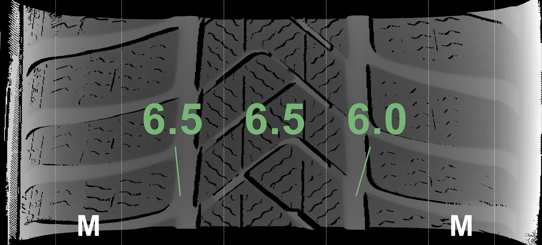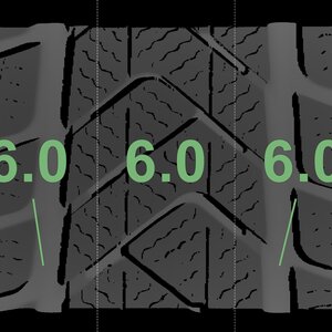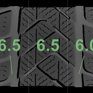 The measured tread depths and the details of the rims are shown above.