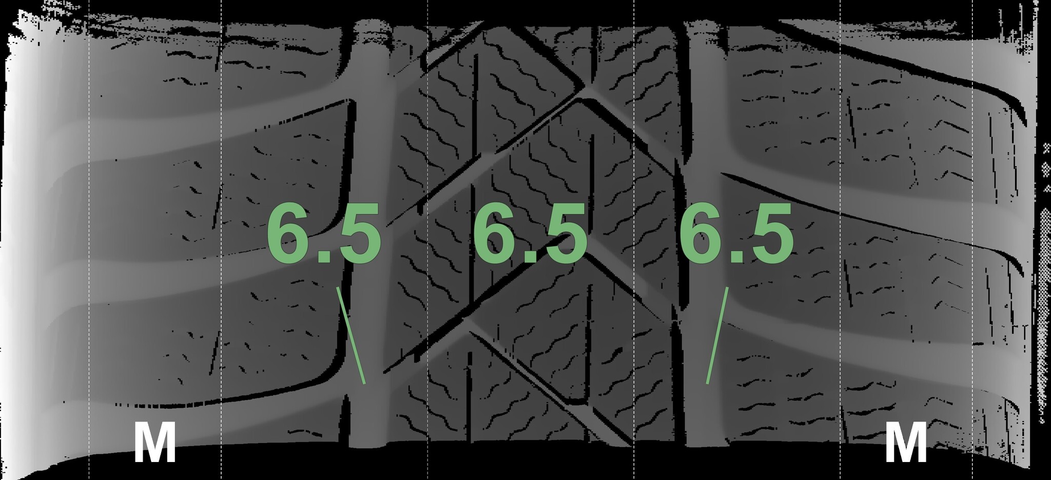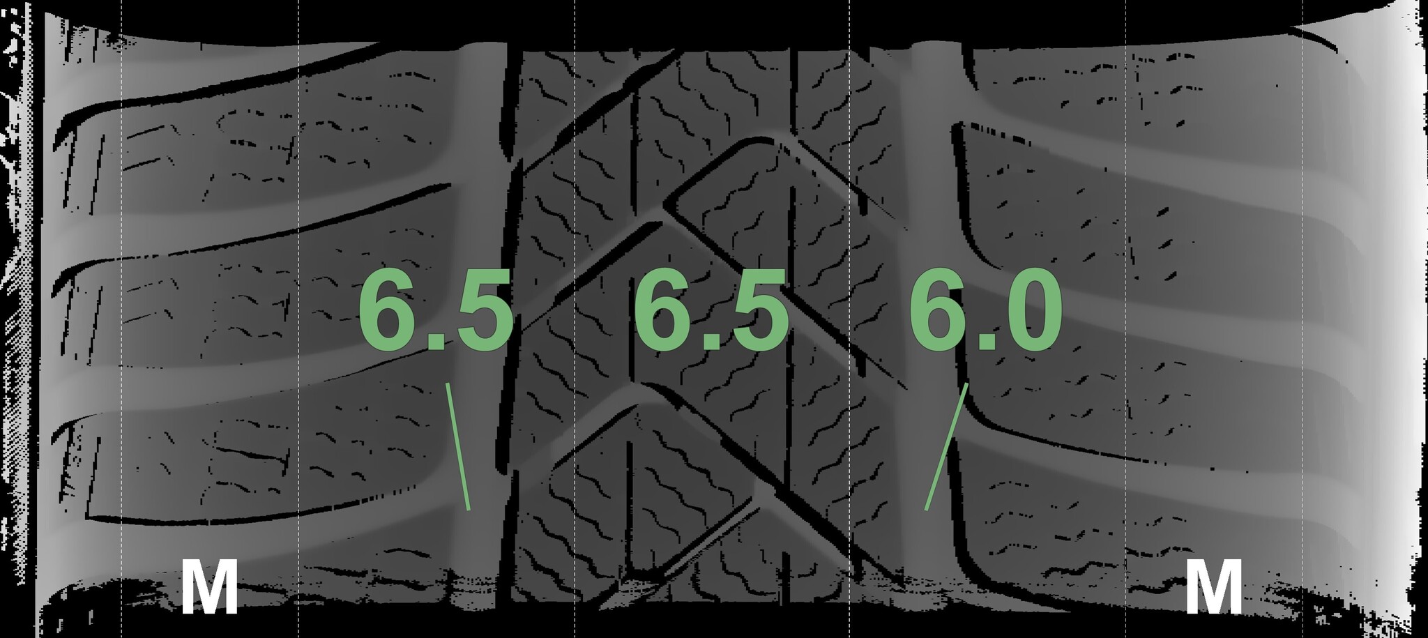 | Condition | Profile depth | DOT | Front Left | Used | 6.5 mm | 2423 |