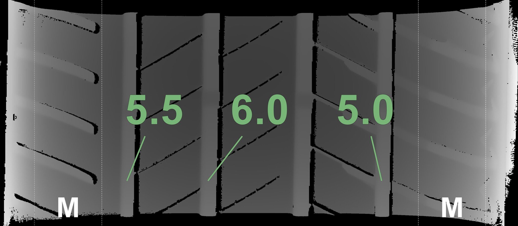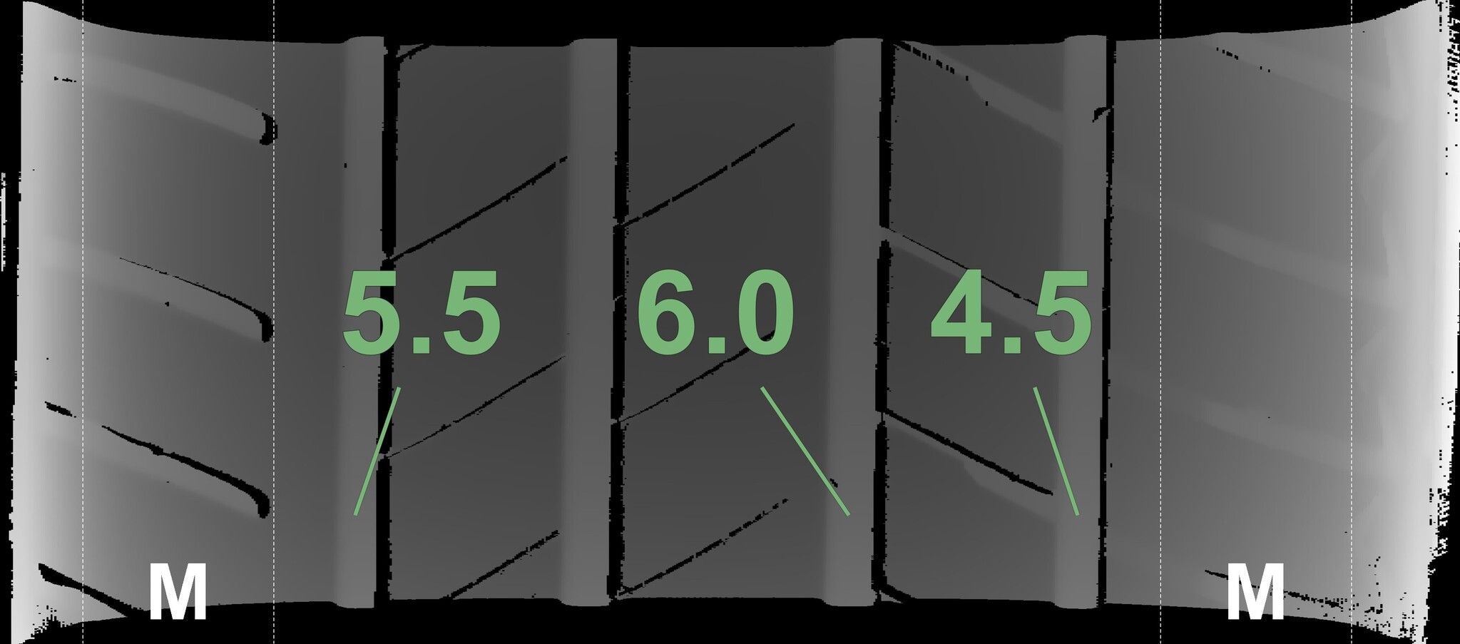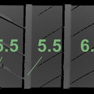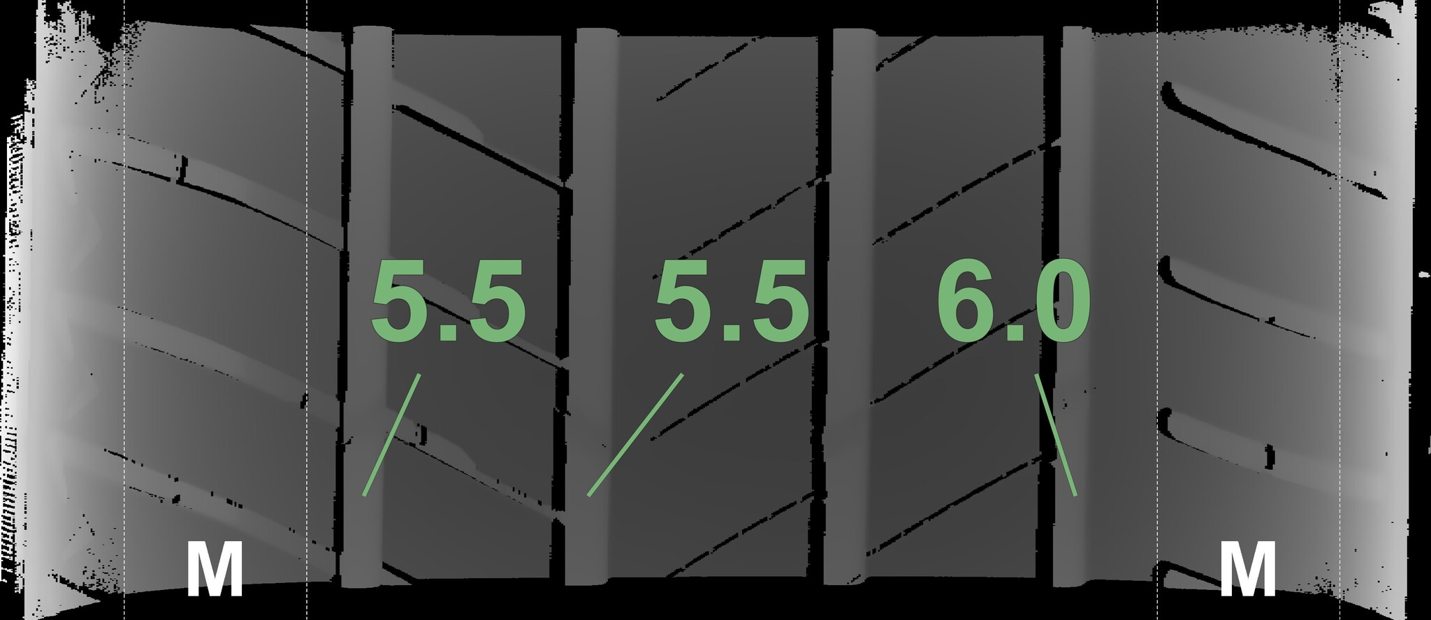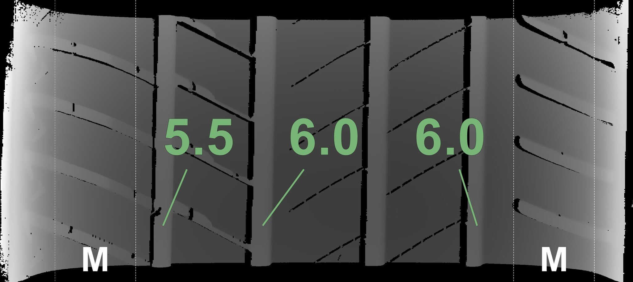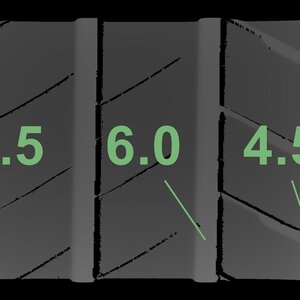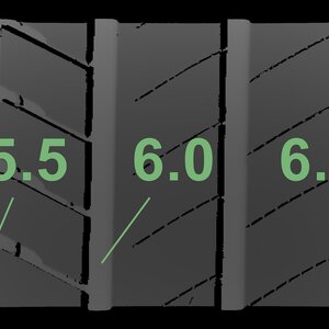 The measured tread depths and the details of the rims are shown above.
