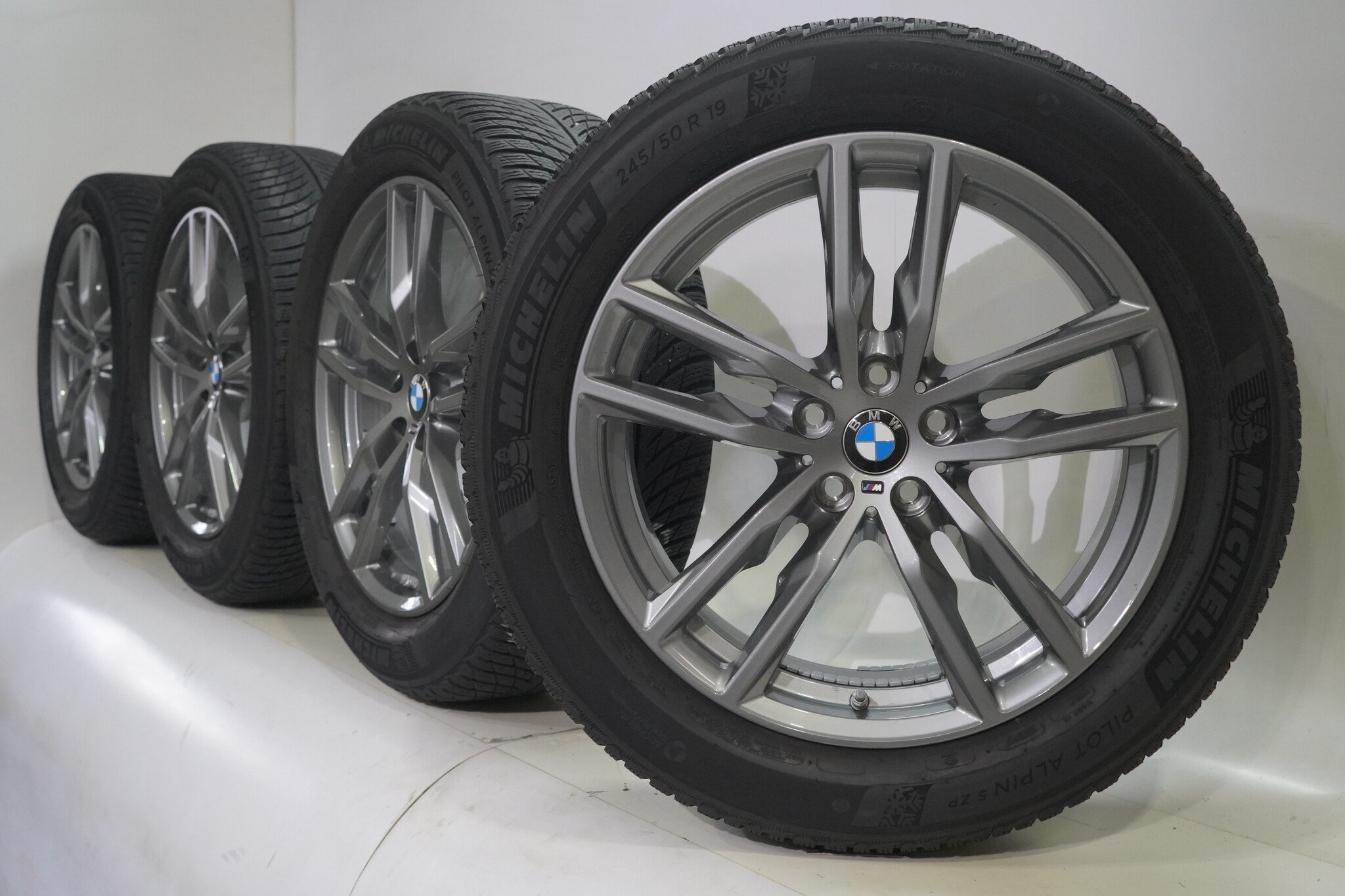 Original wheel set from BMW, styling 698M, 19 inch rims with Michelin Pilotalpin 5 Runflat winter tires. These rims are original rims from the BMW brand and suitable for: BMW X3 X4 G01 G02.