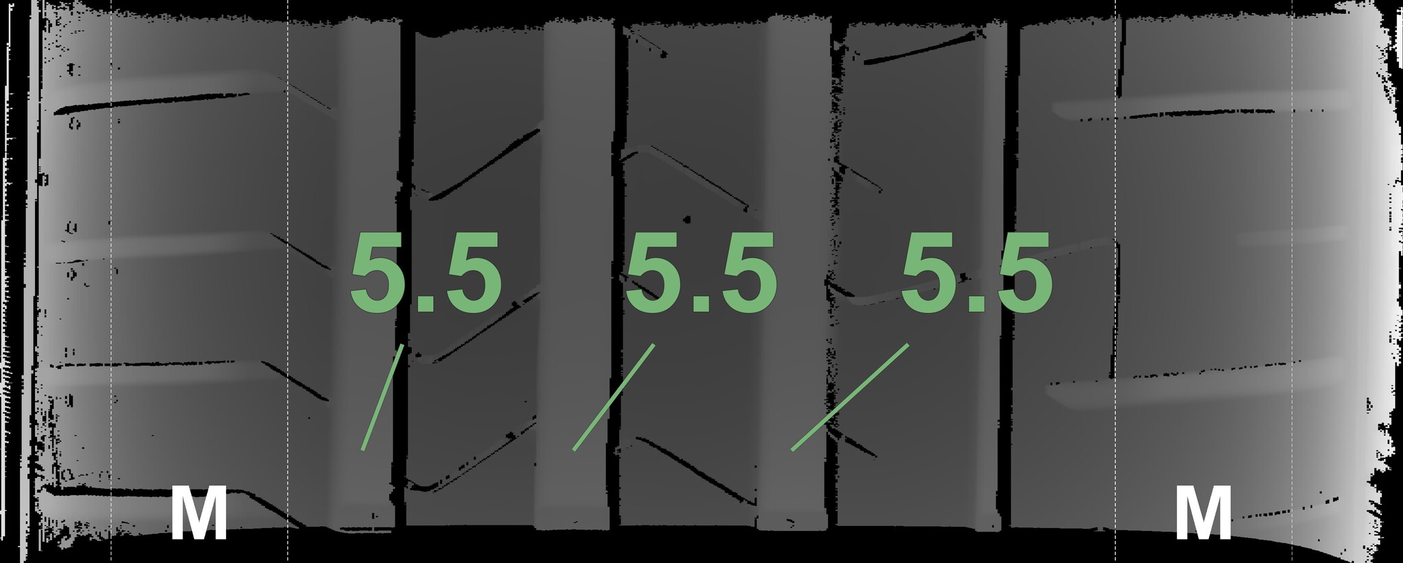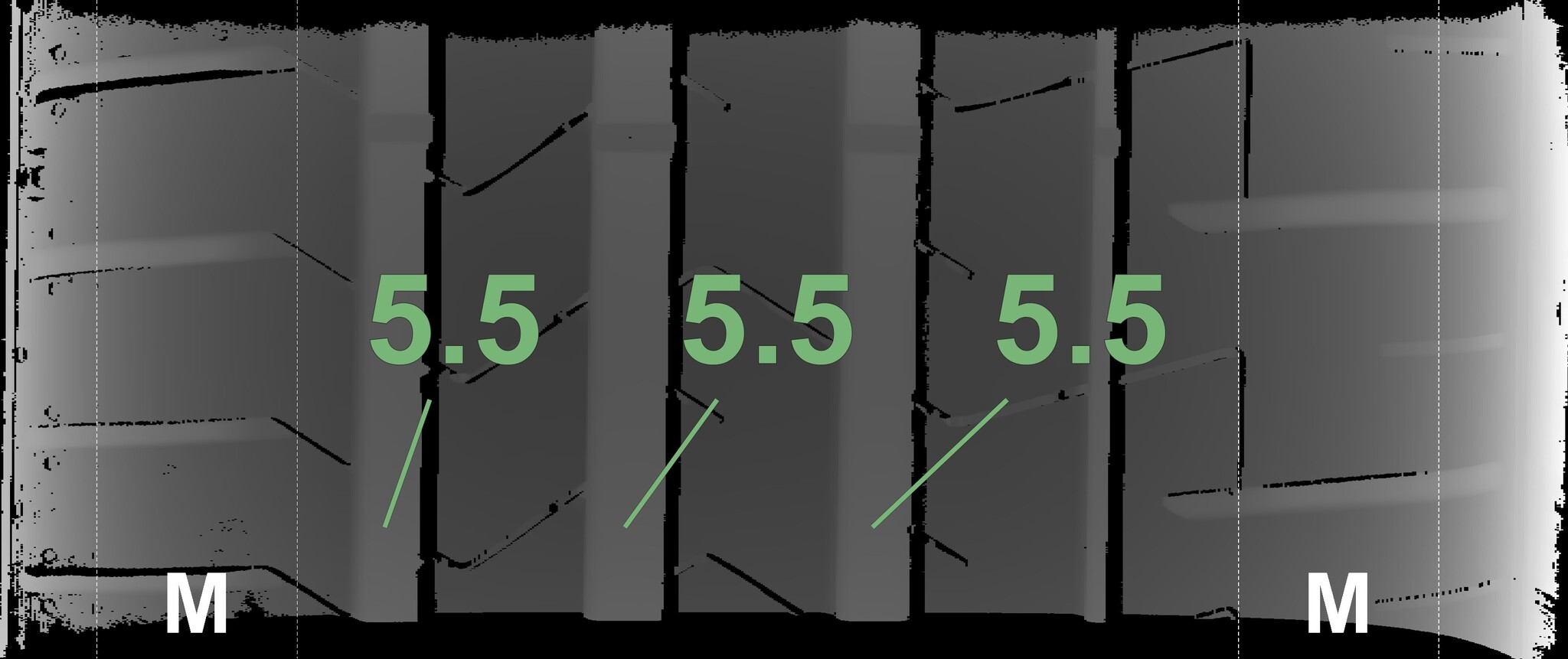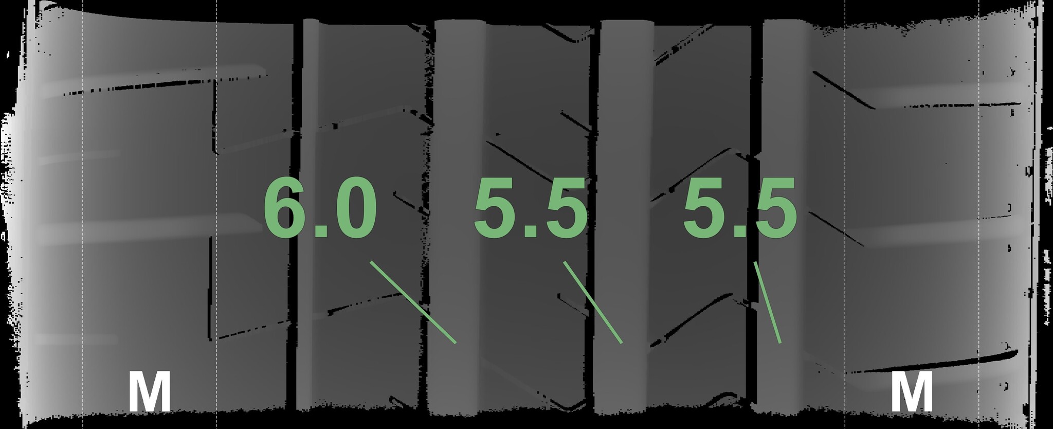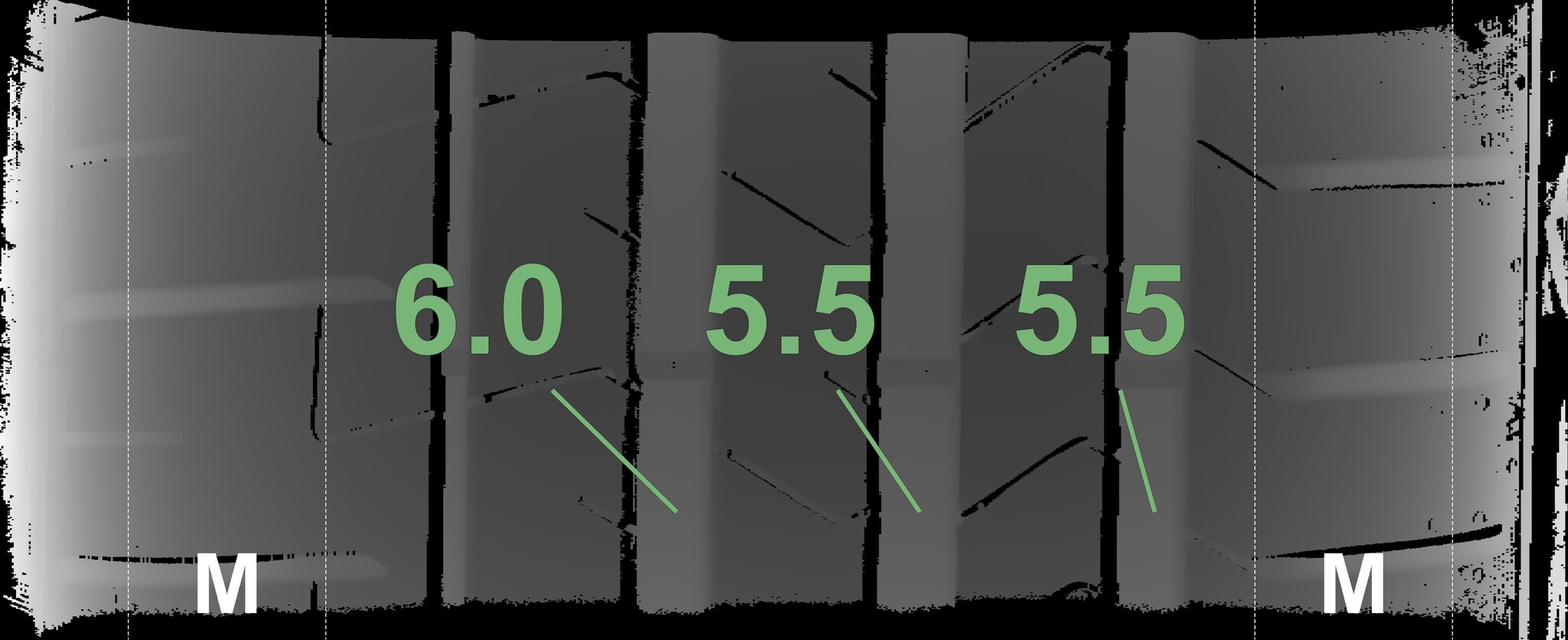 Condition | Profile depth | DOT | Front Left New | 5.7 mm | 4622