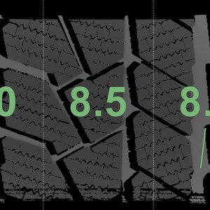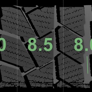 The measured tread depths and the details of the rims are shown above.
