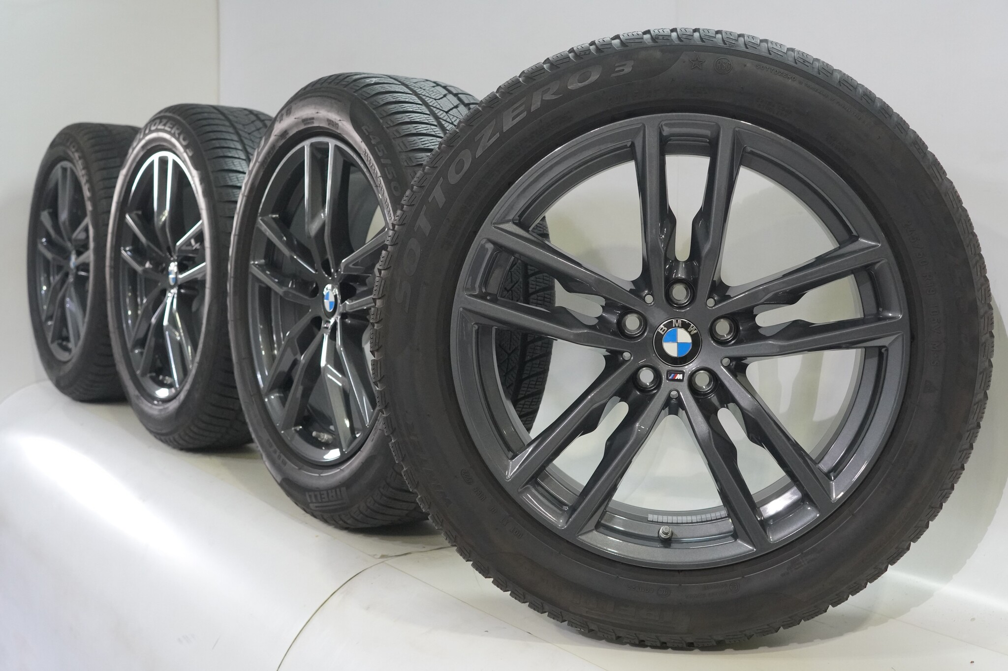 Original wheel set from BMW, styling 698M, 19 inch rims with Pirelli Winter Sottozero 3 Runflat winter tires. These rims are original rims from the BMW brand and suitable for: BMW X3 X4 G01 G02.