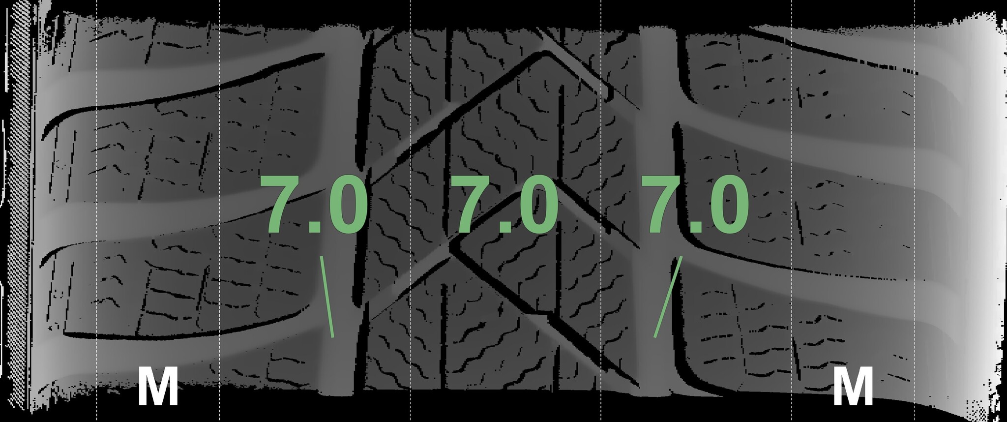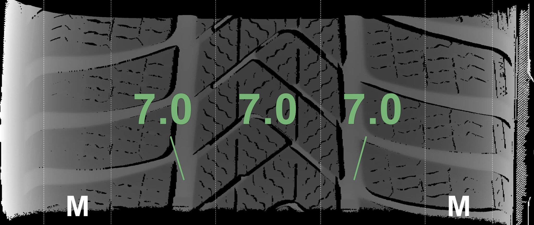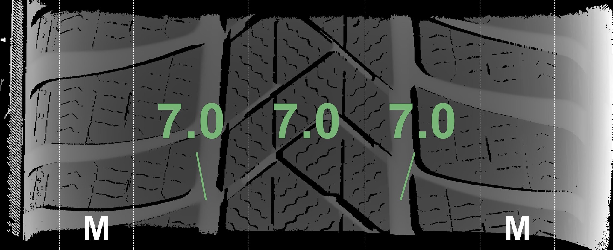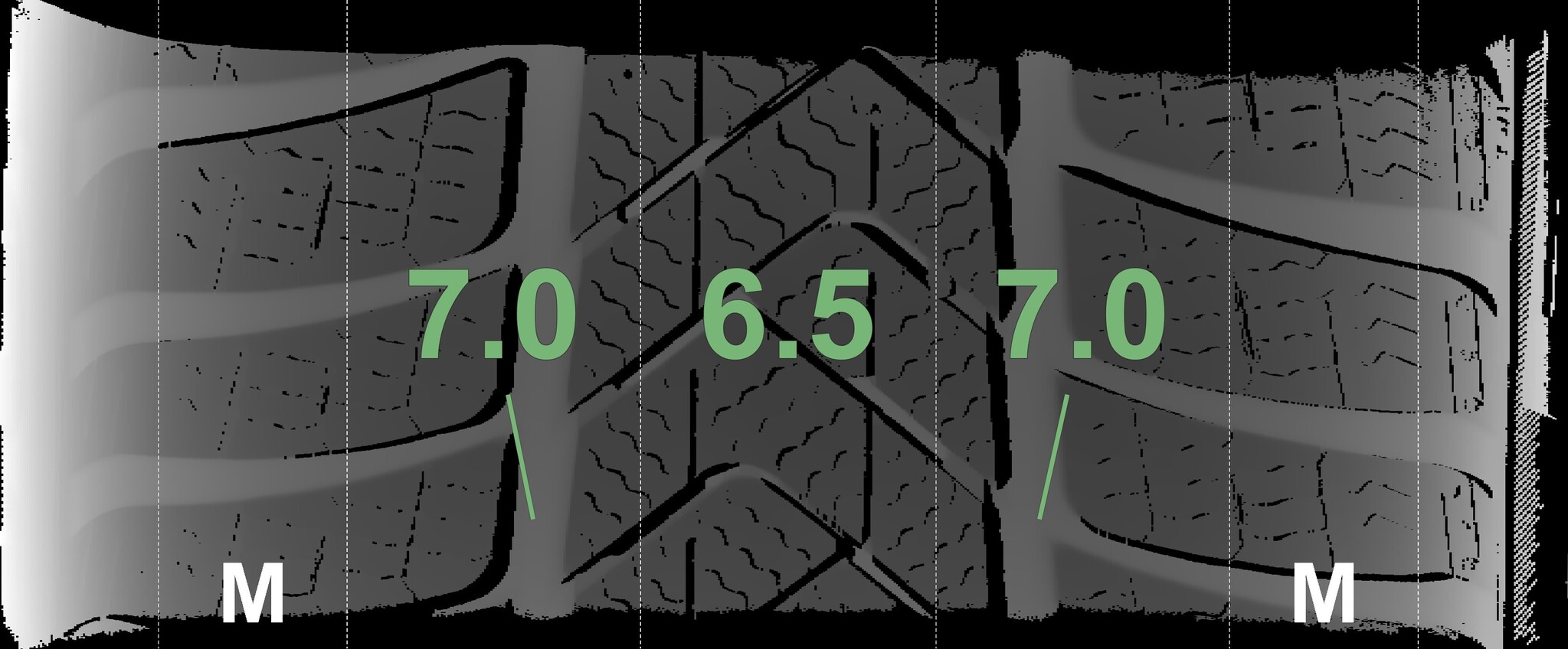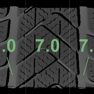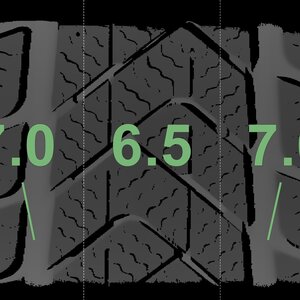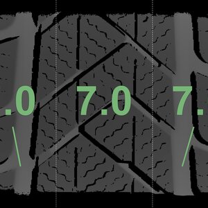 The measured tread depths and the details of the rims are shown above.