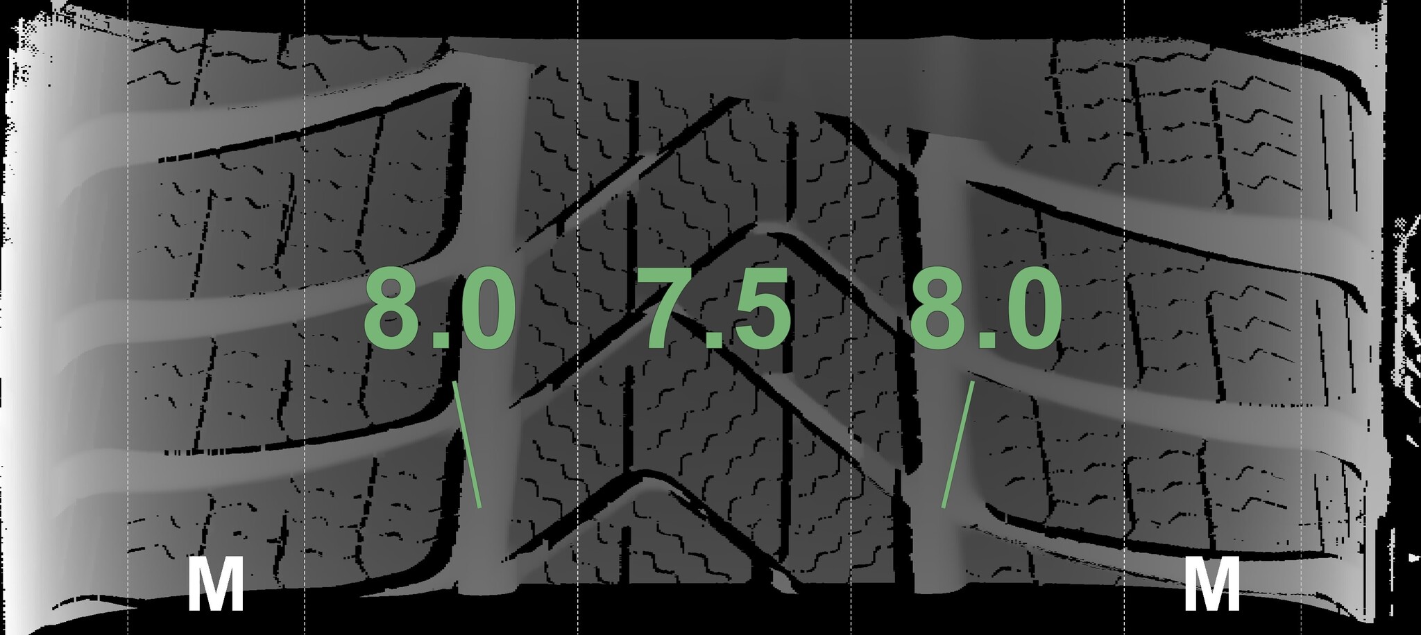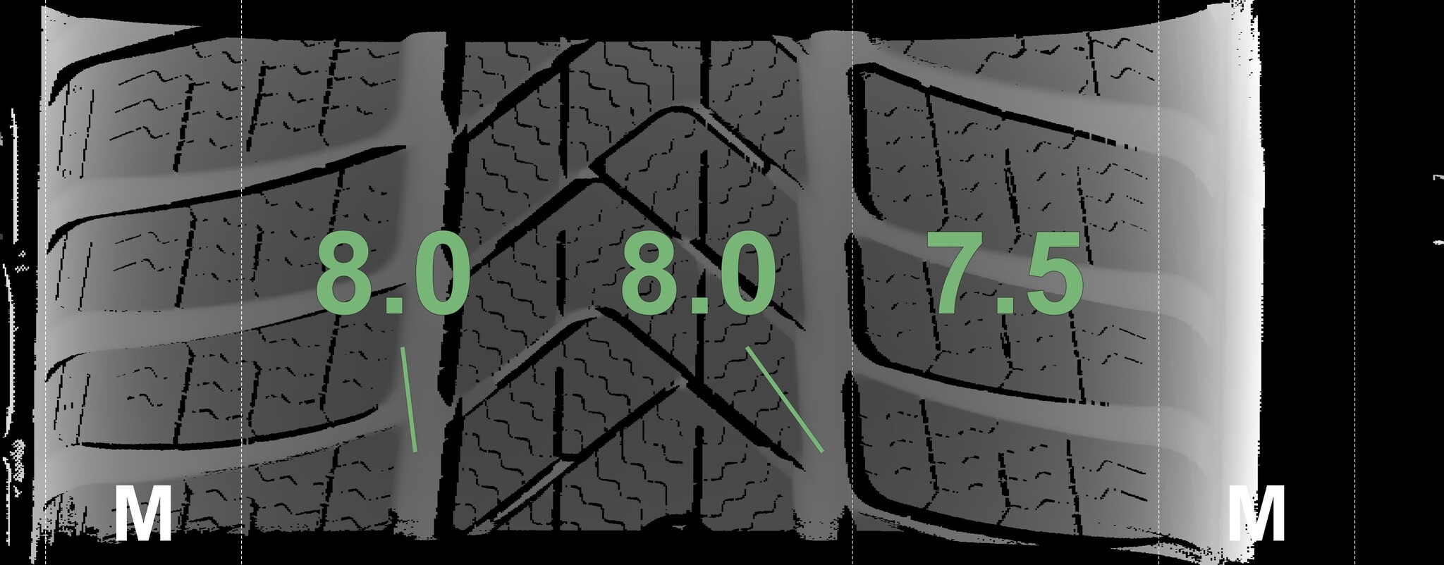 | Condition | Profile depth | DOT | Front Right | New | 7.8 mm | 4225 |