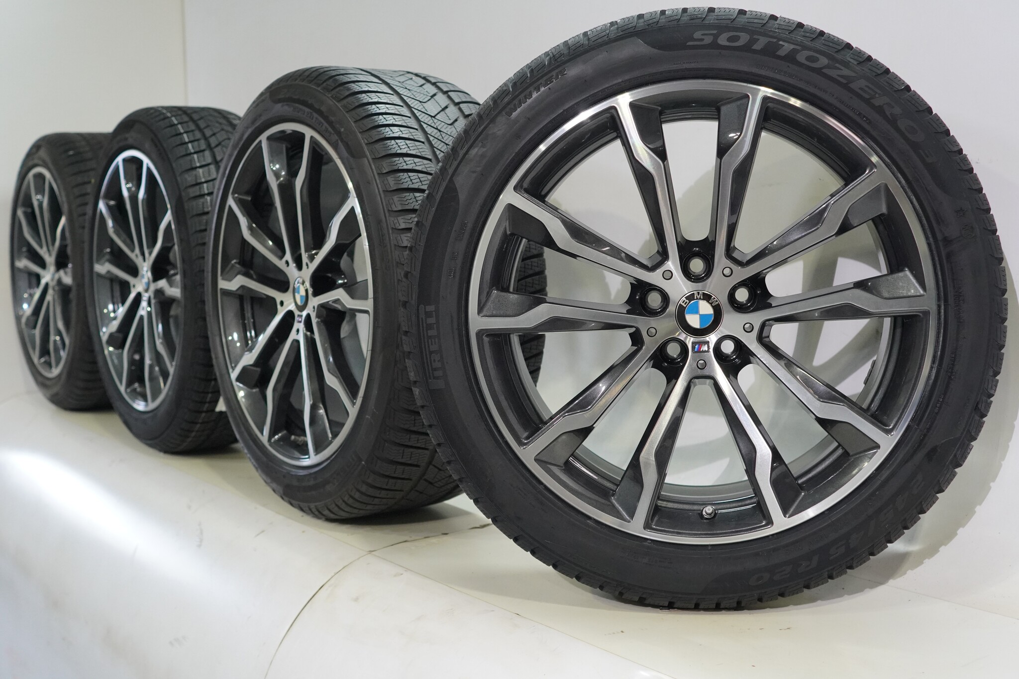 Original BMW wheel set, styling 699M, 20-inch rims with Pirelli Winter Sottozero 3 Runflat Winter tires. These rims are original BMW brand rims and suitable for: BMW X3 X4 G01 G02.