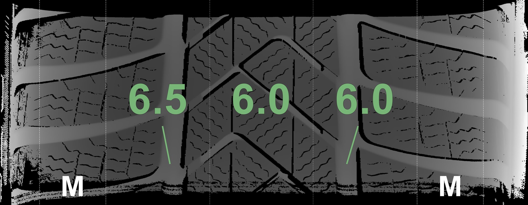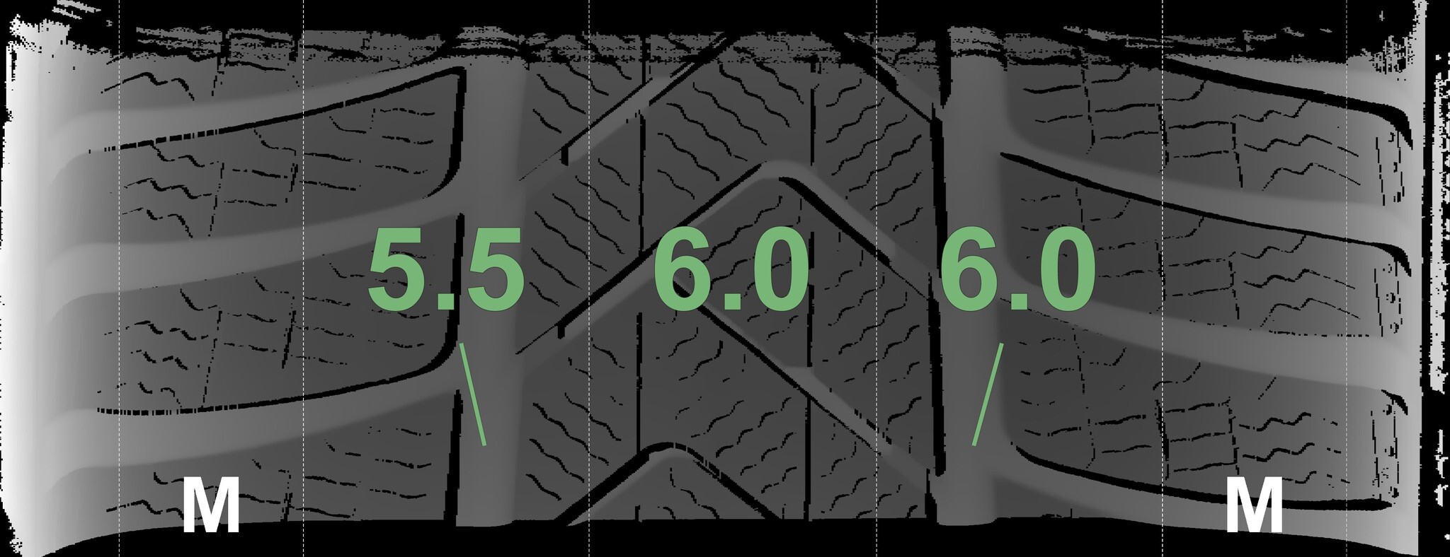 The measured tread depths and the details of the rims are shown above.