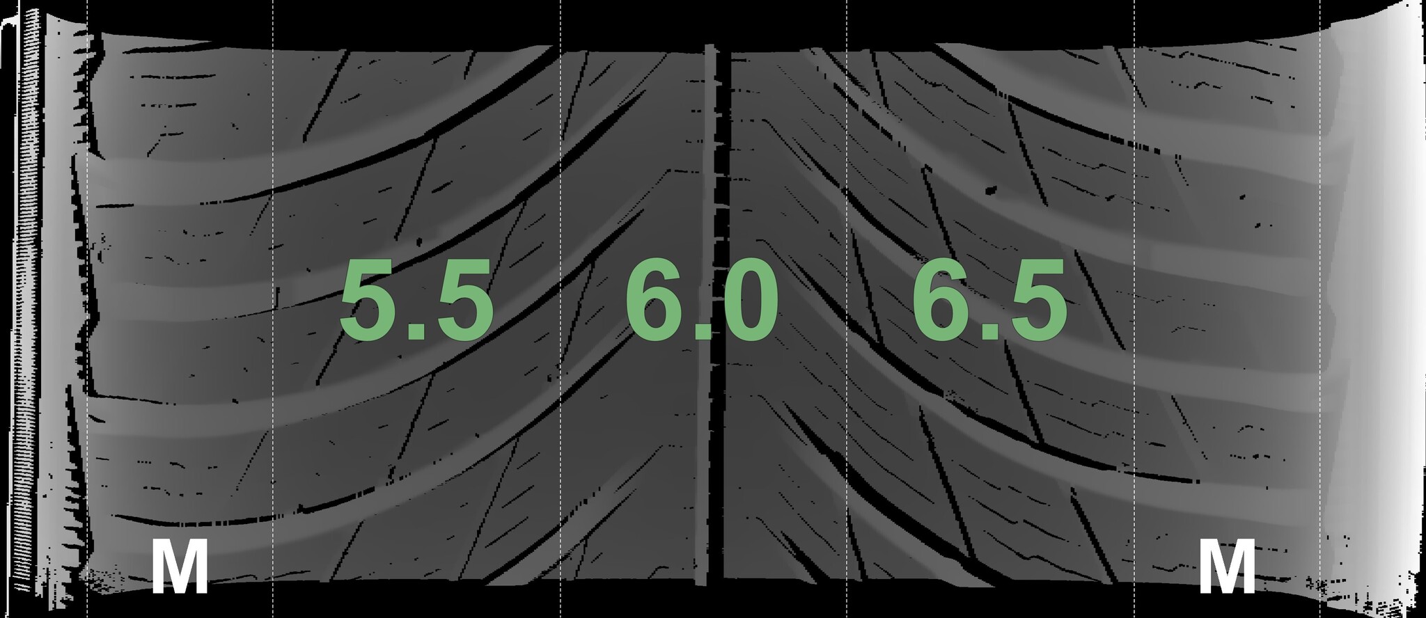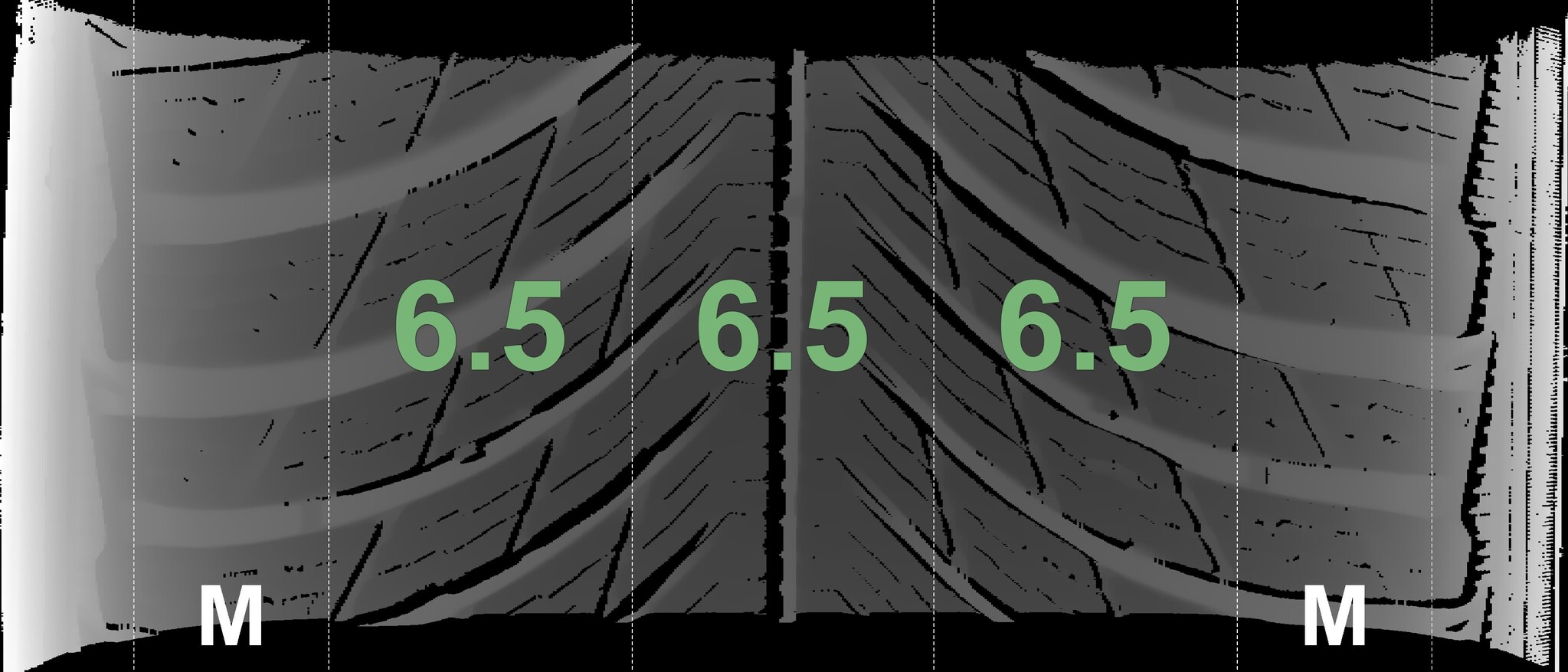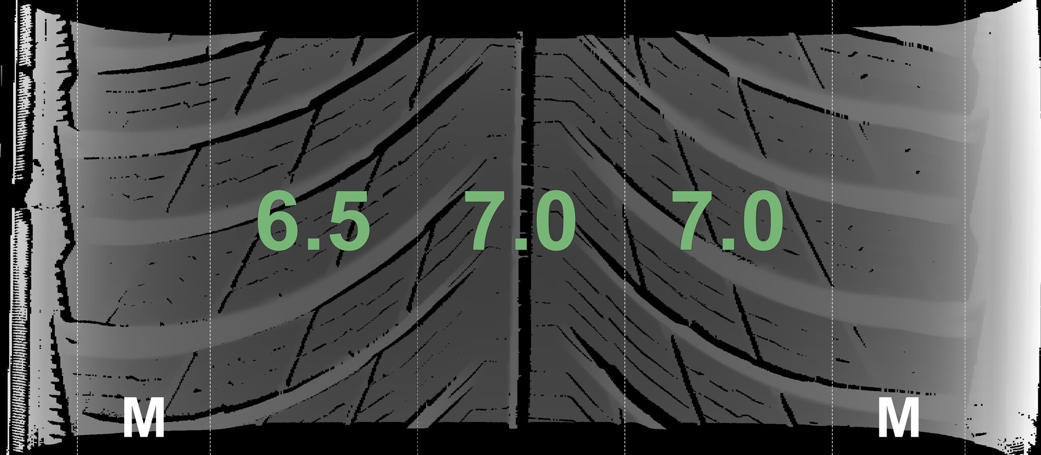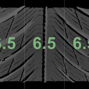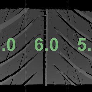 The measured tread depths and the details of the rims are shown above.