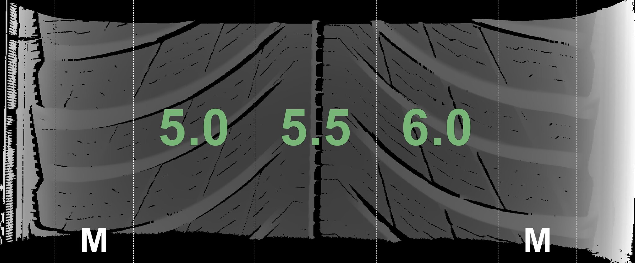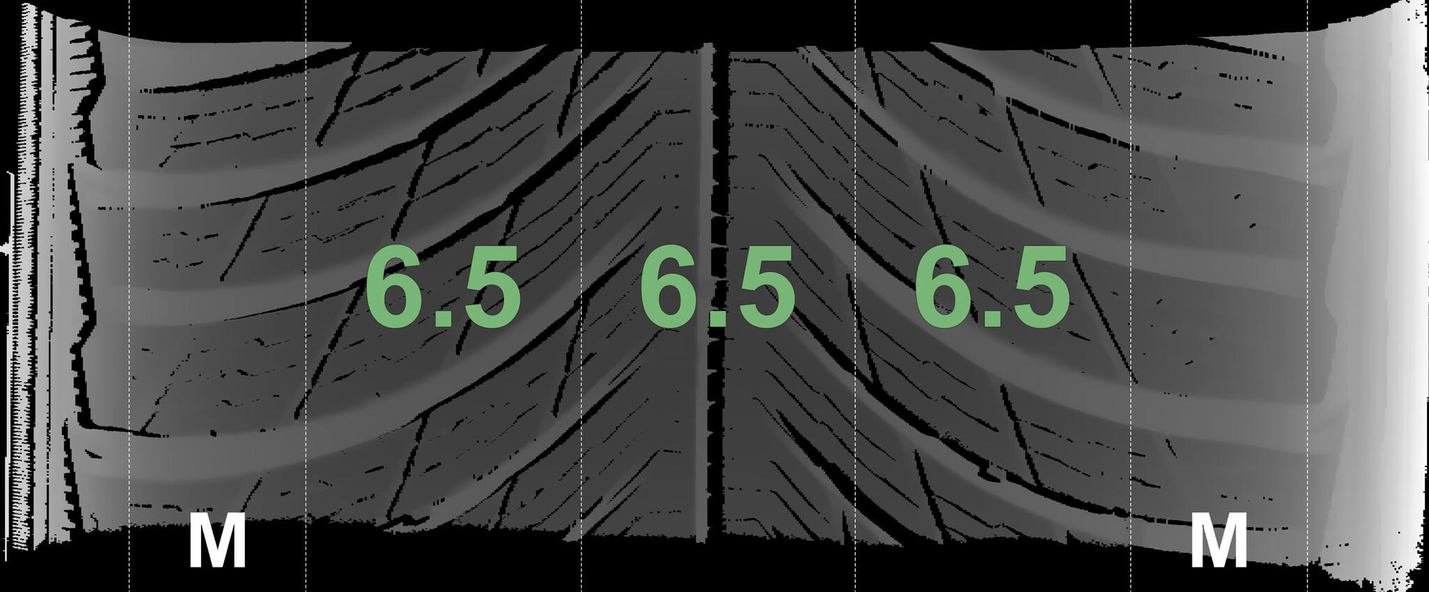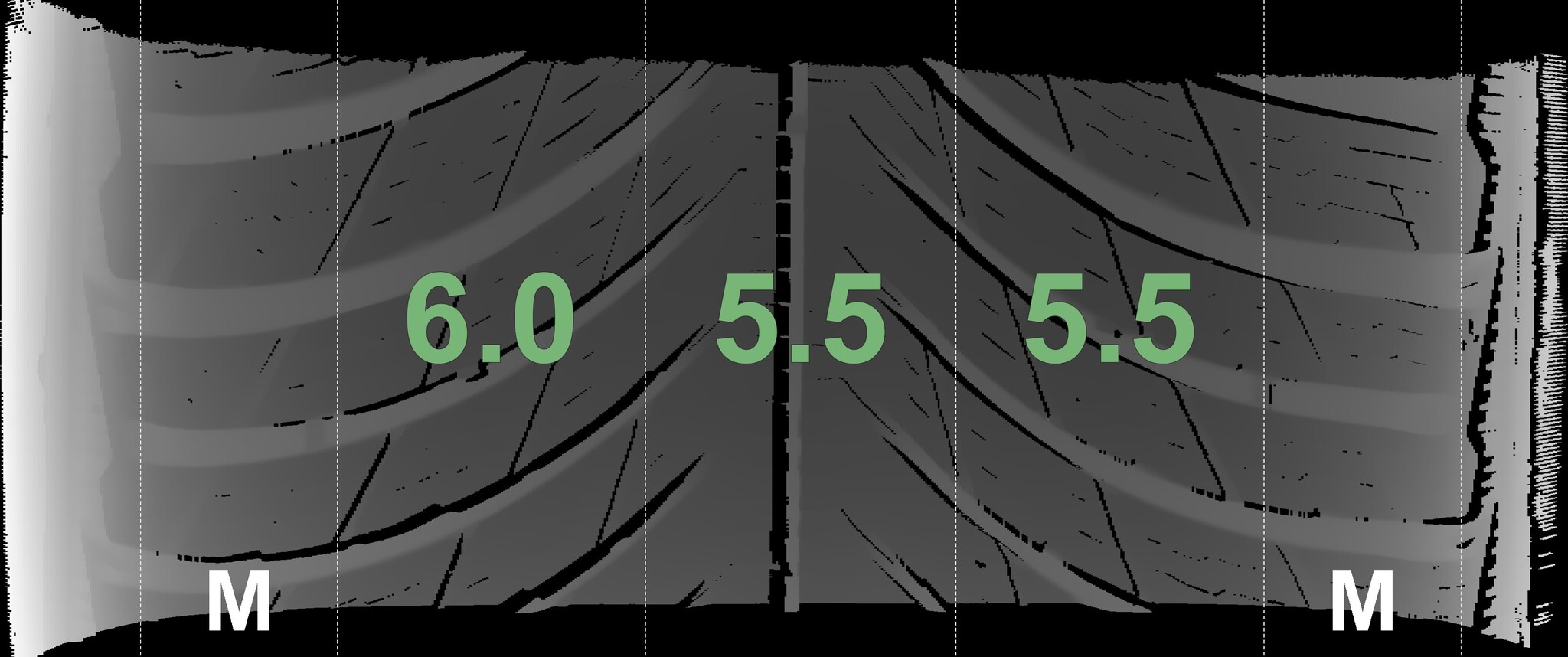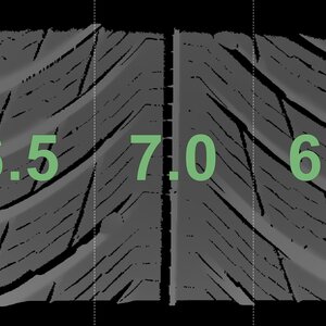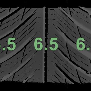 The measured tread depths and the details of the rims are shown above.