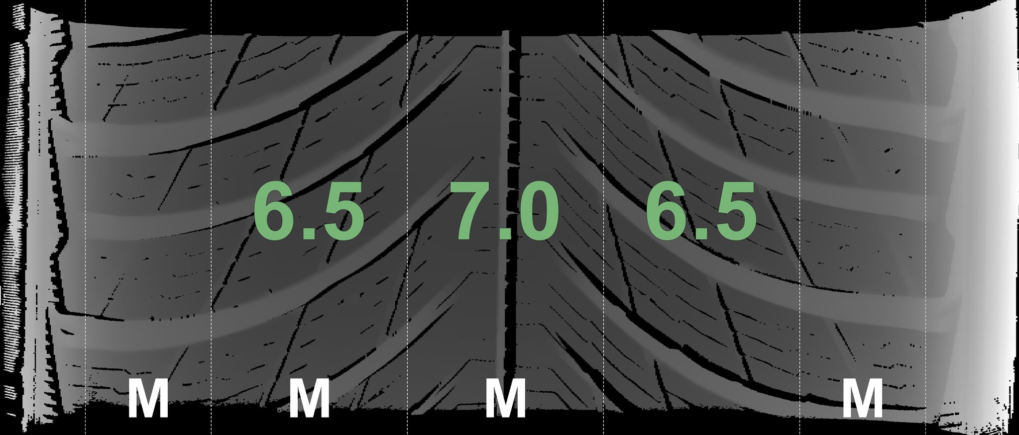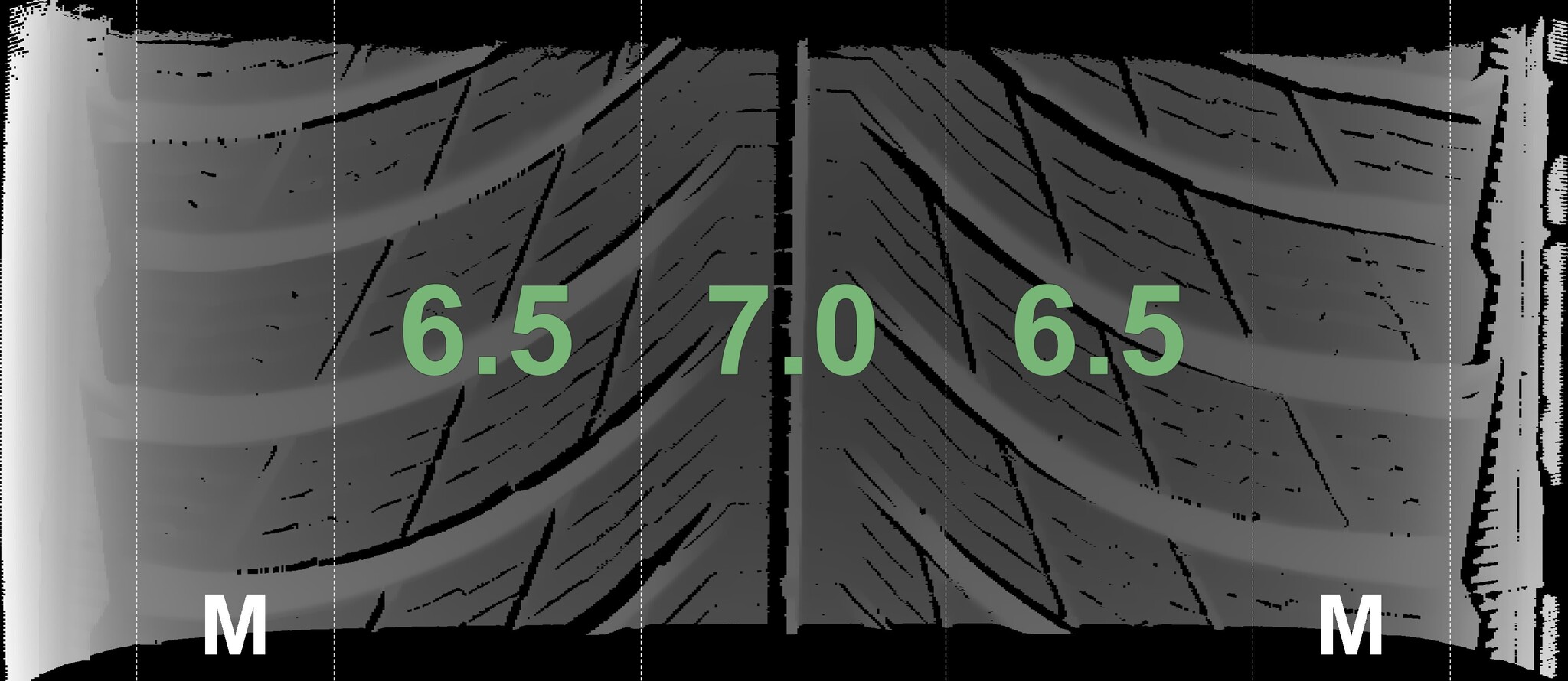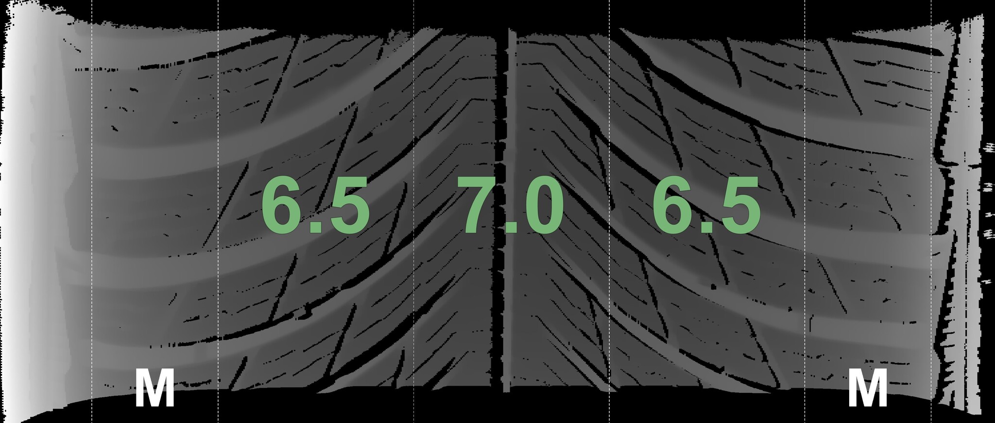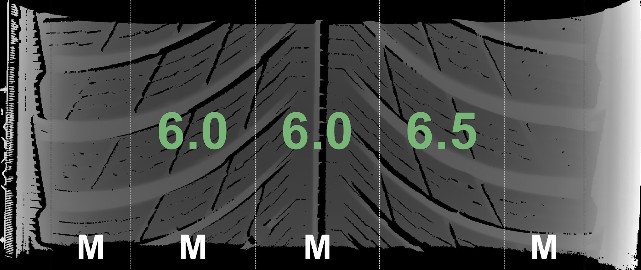 | Condition | Profile depth | DOT | Front Left | Used | 6.7 mm | 3523 |