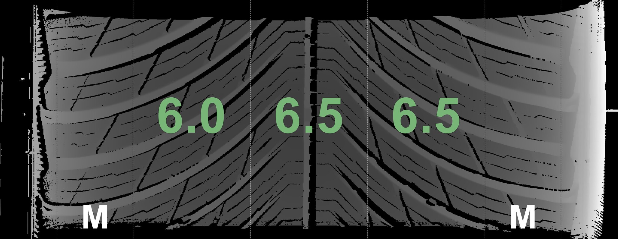 | Condition | Profile depth | DOT | Rear Left | Used | 6.5 mm | 1321 |