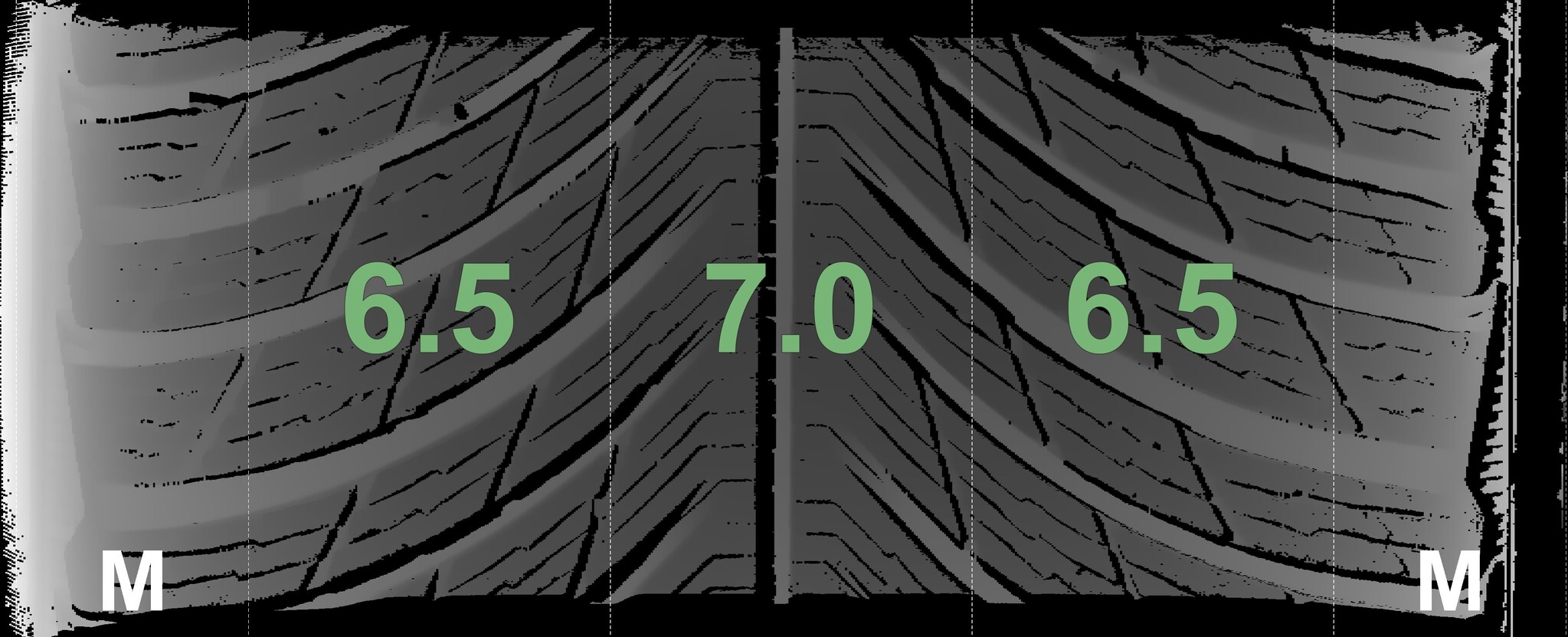 | Condition | Profile depth | DOT | Front Left | Used | 6.5 mm | 1321 |