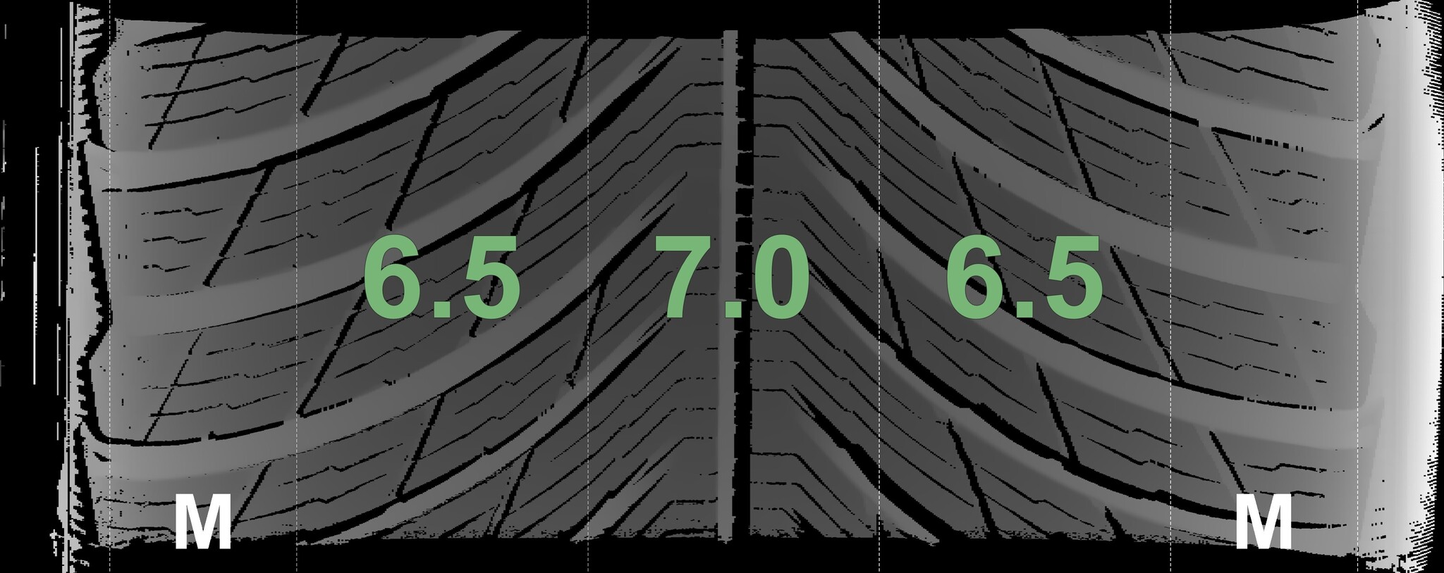 The measured tread depths and details of the rims are shown above.