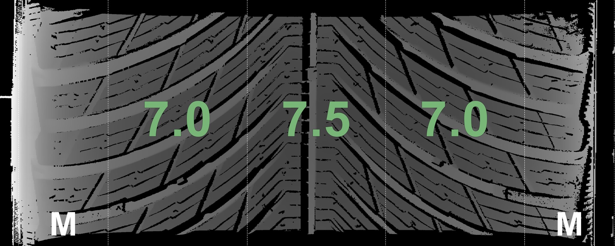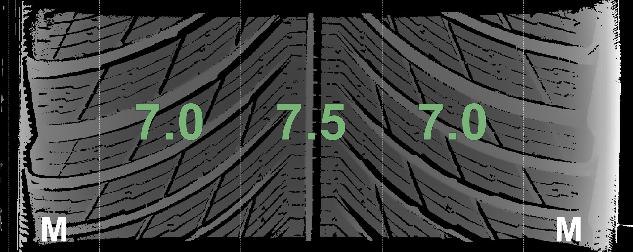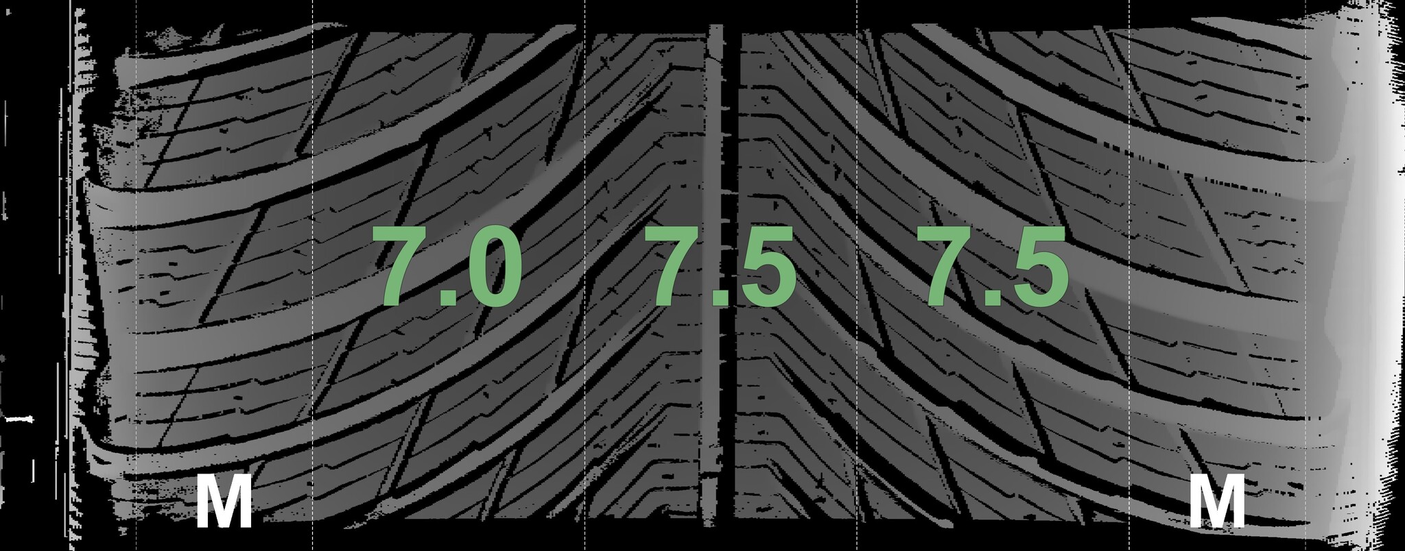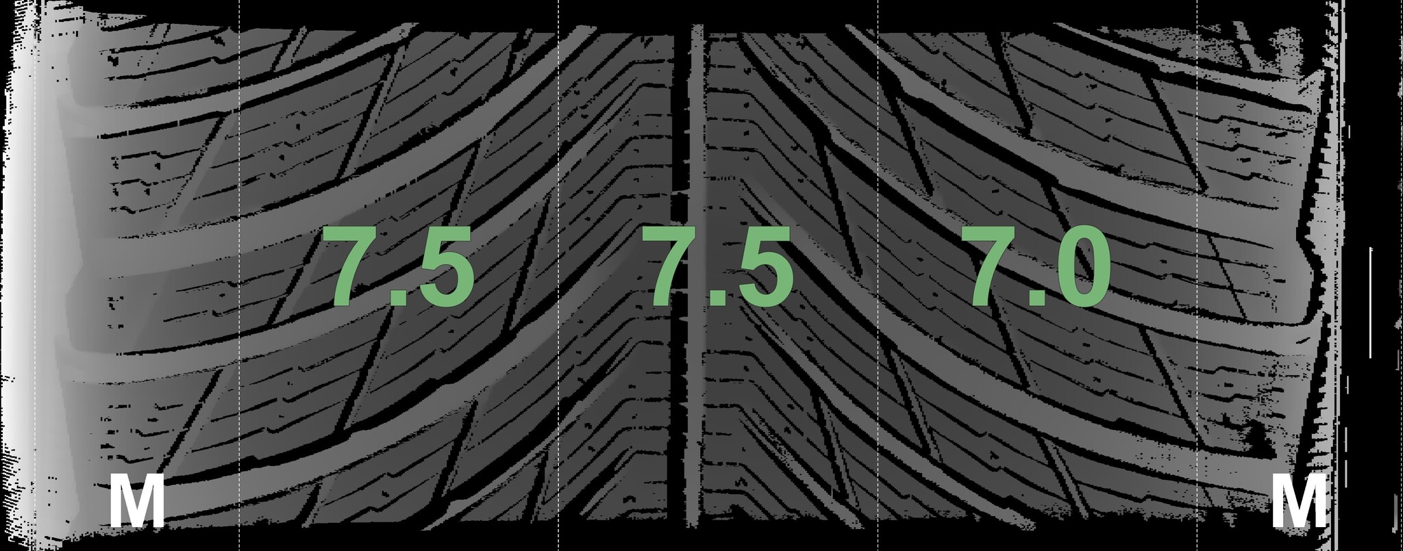 | Condition | Profile depth | DOT | Front Right | New | 7.0 mm | 1419 |