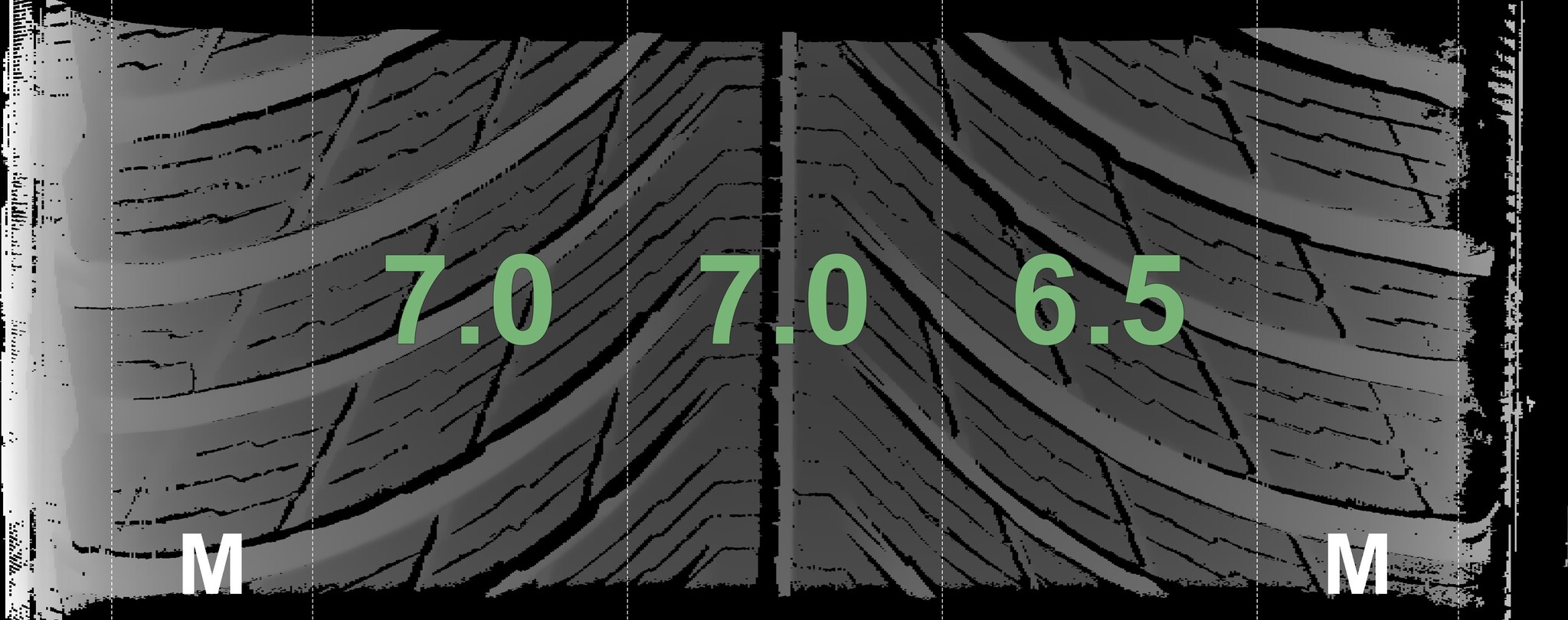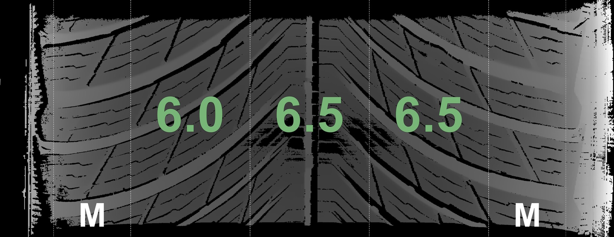 Condition | Profile depth | DOT | Front Right | Used | 6.5 mm | 1321 |
