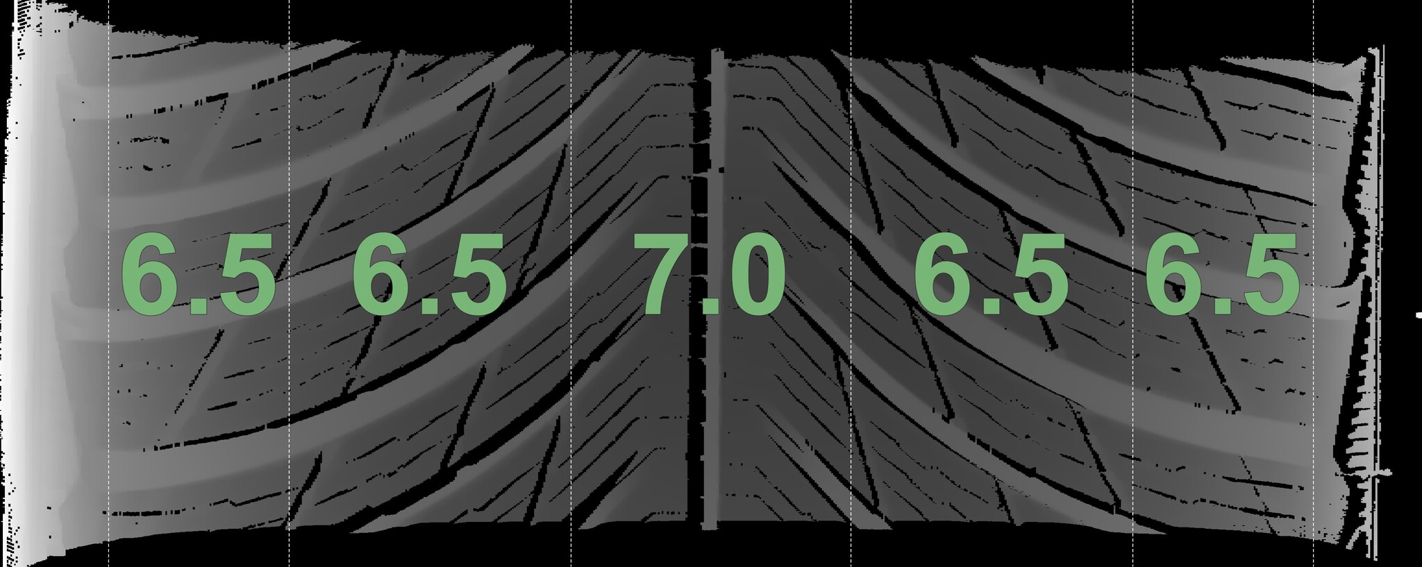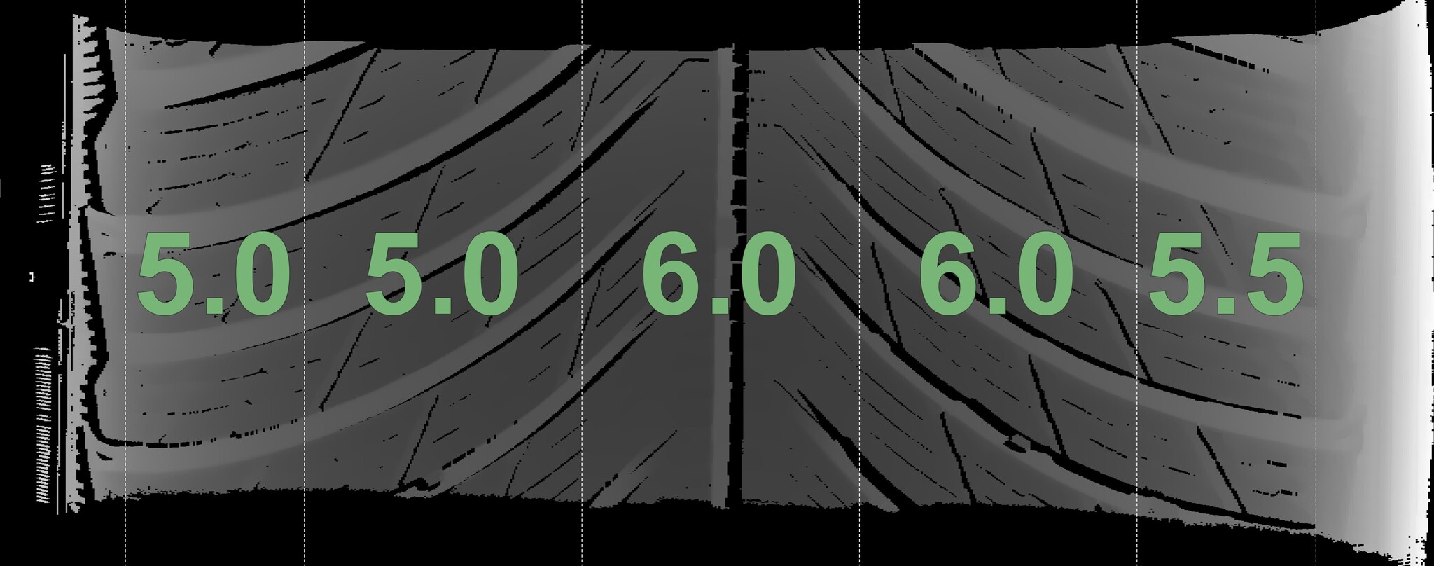 | Condition | Profile depth | DOT | Front Left | Used | 6.7 mm | 1321 |