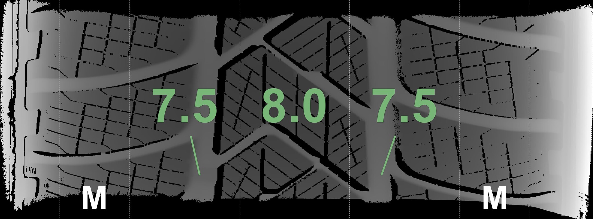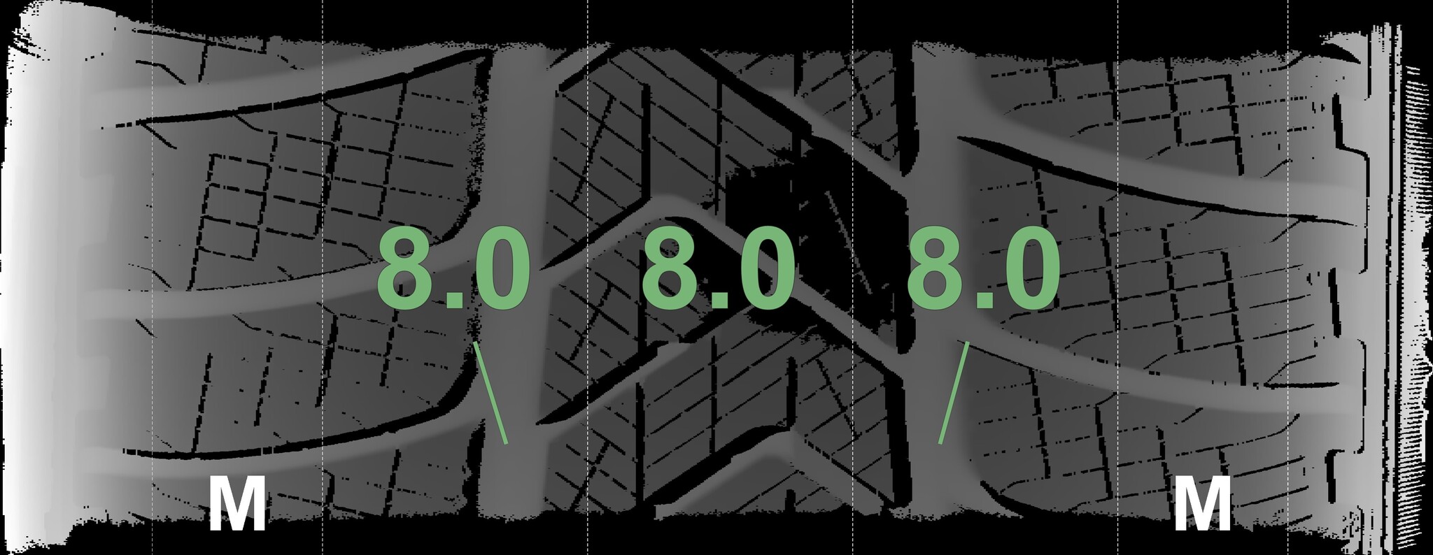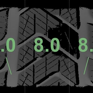 The measured tread depths and the details of the rims are shown above.