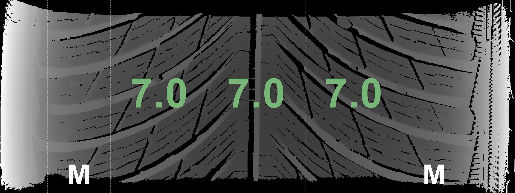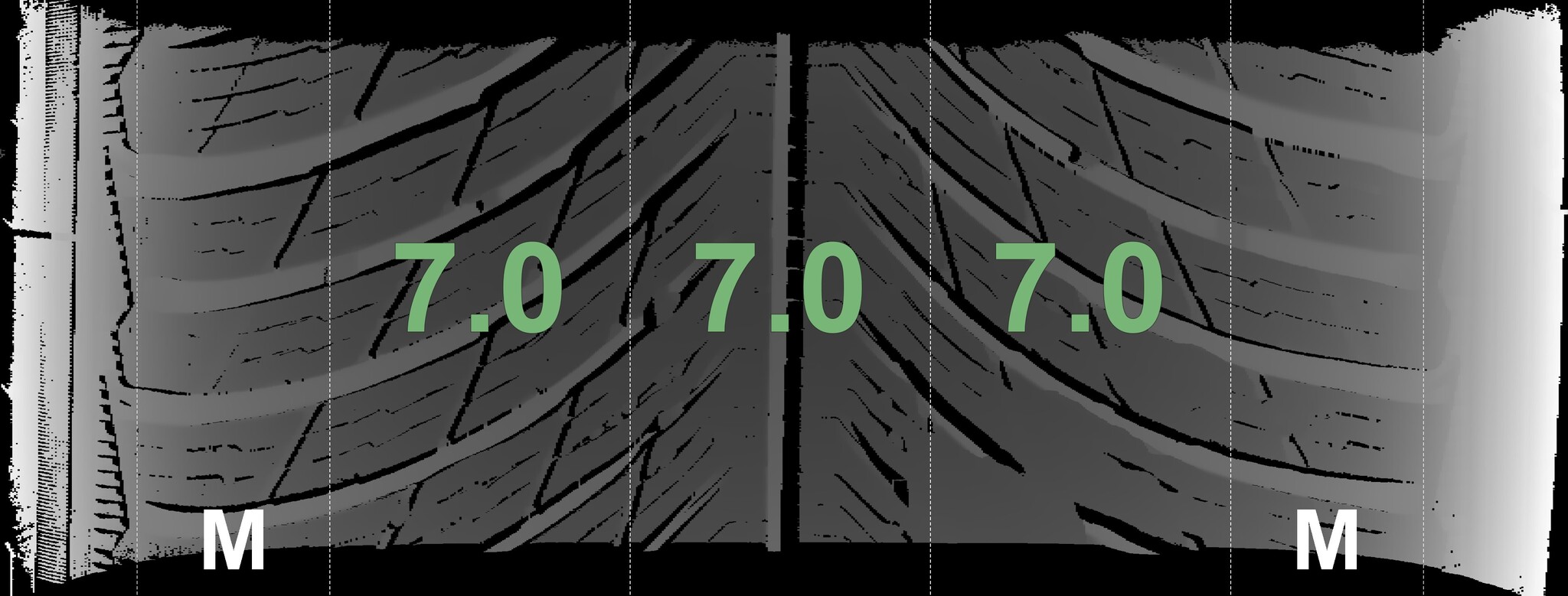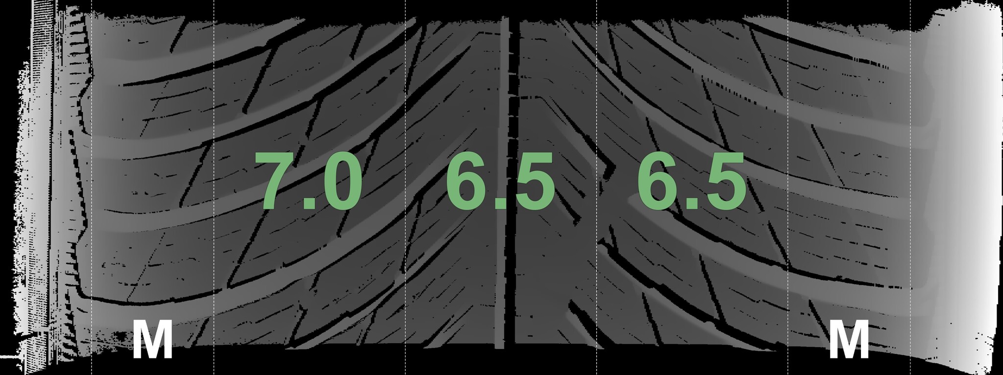| Condition | Profile depth | DOT | Front Right | Used | 6.7 mm | 0221 |