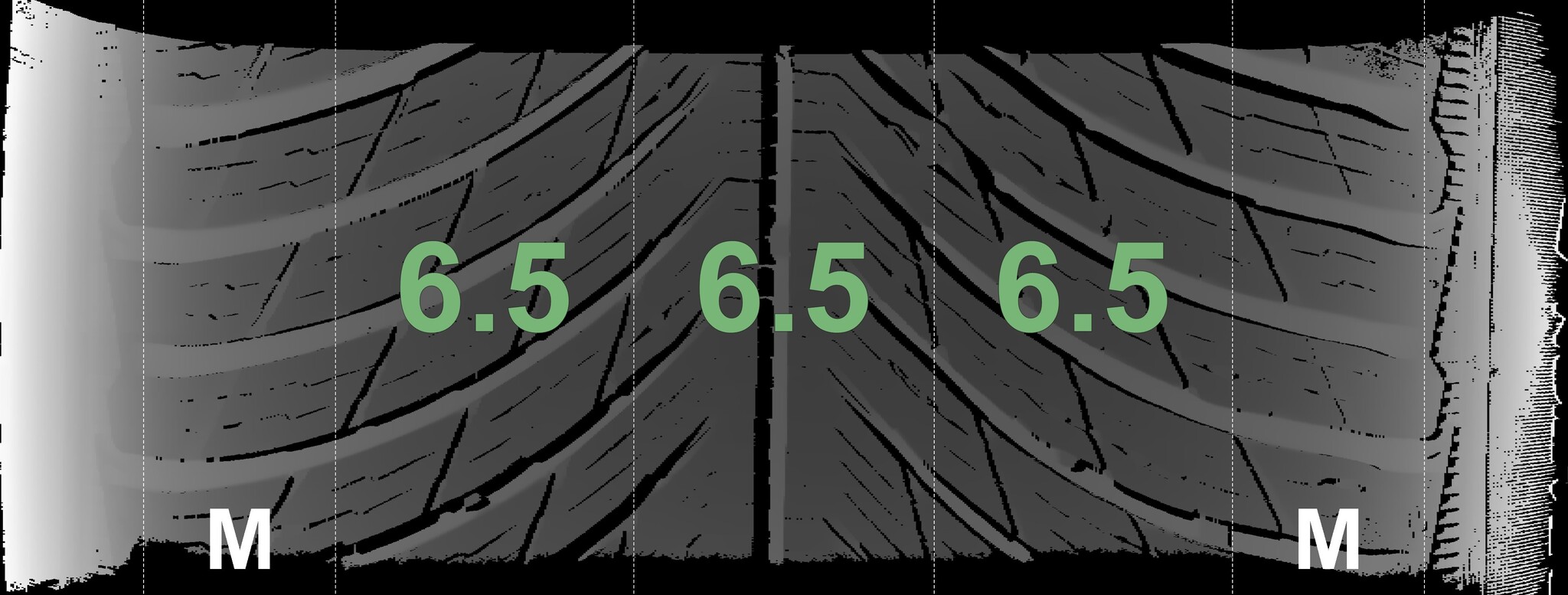 | Condition | Profile depth | DOT | Front Left | Used | 6.5 mm | 0221 |