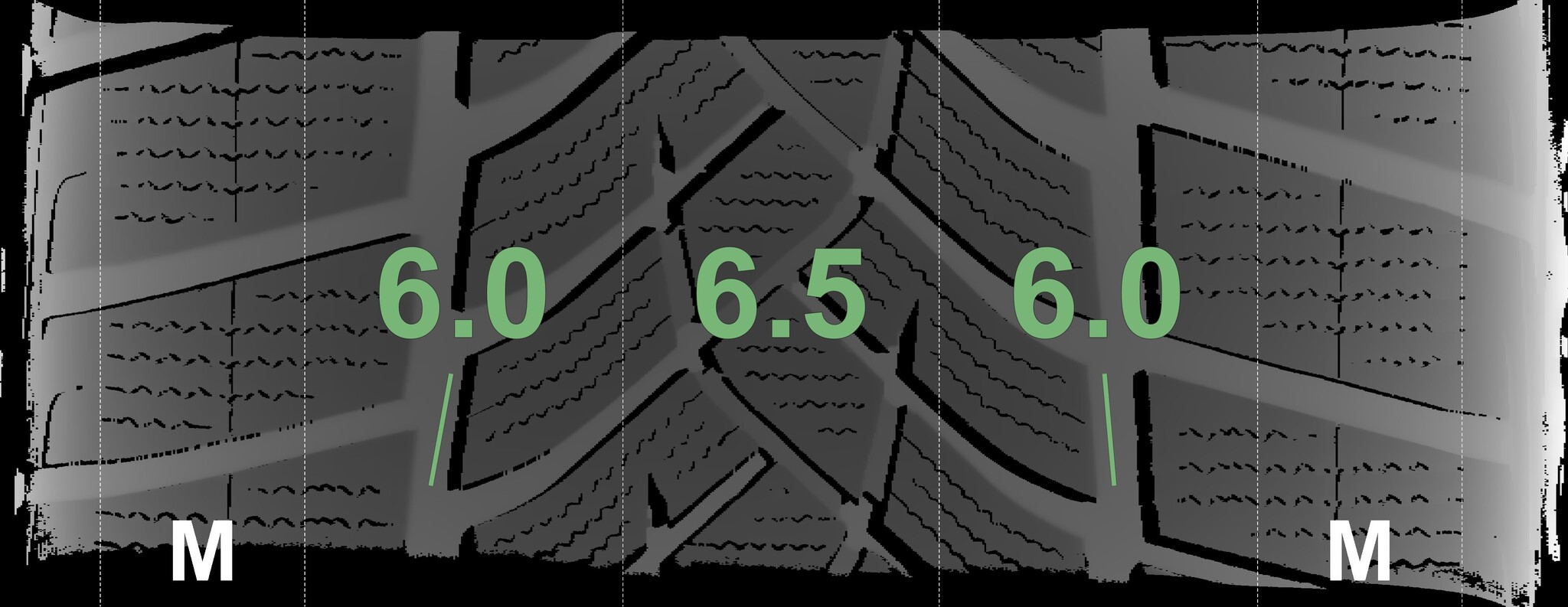 | Condition | Profile depth | DOT | Rear Right | New | 8.0 mm | 2625 |
