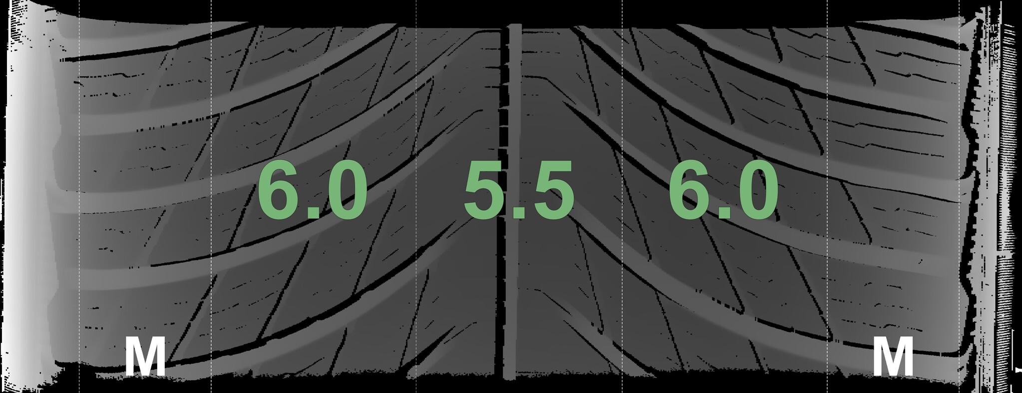 The measured tread depths and the details of the wheels are shown above.
