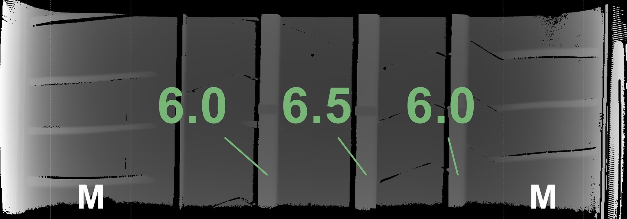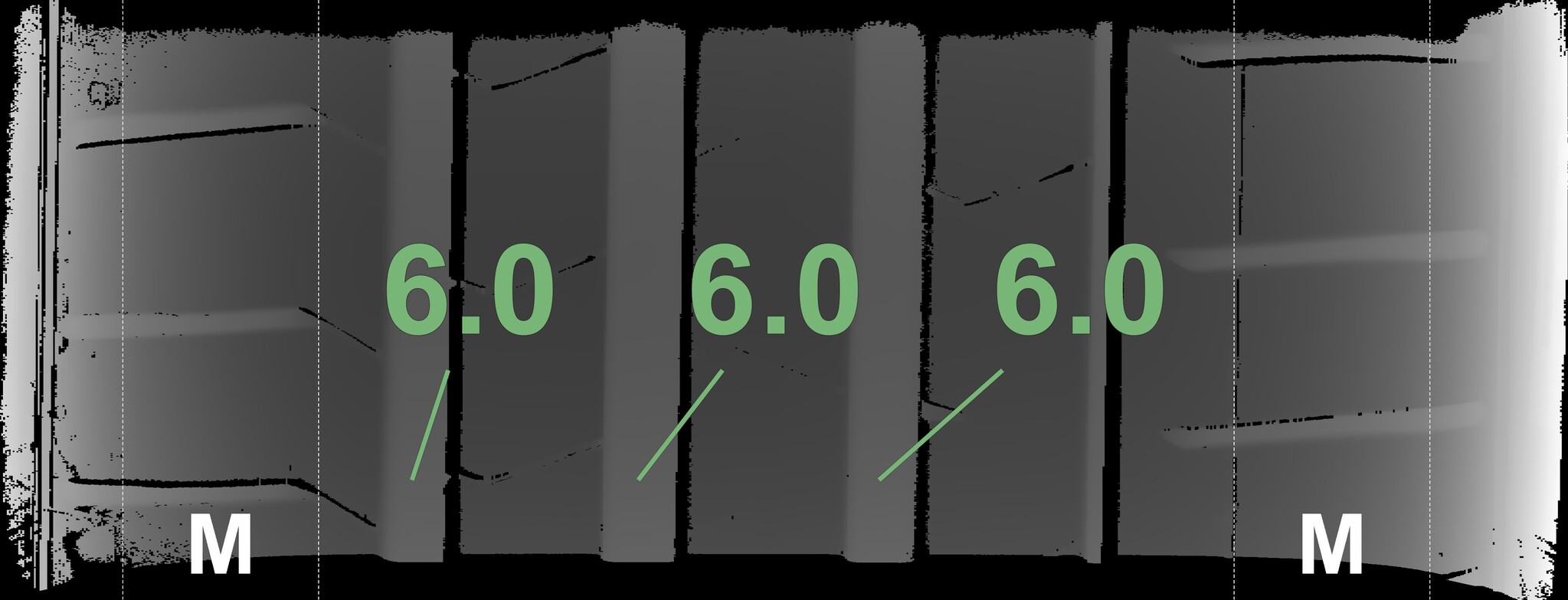 The measured tread depths and the details of the wheels are shown above.
