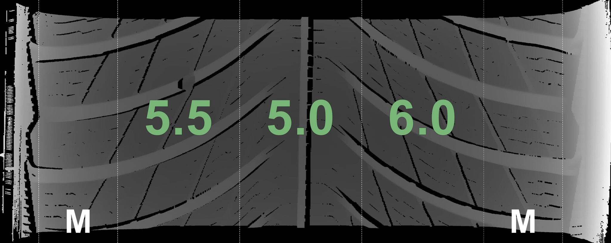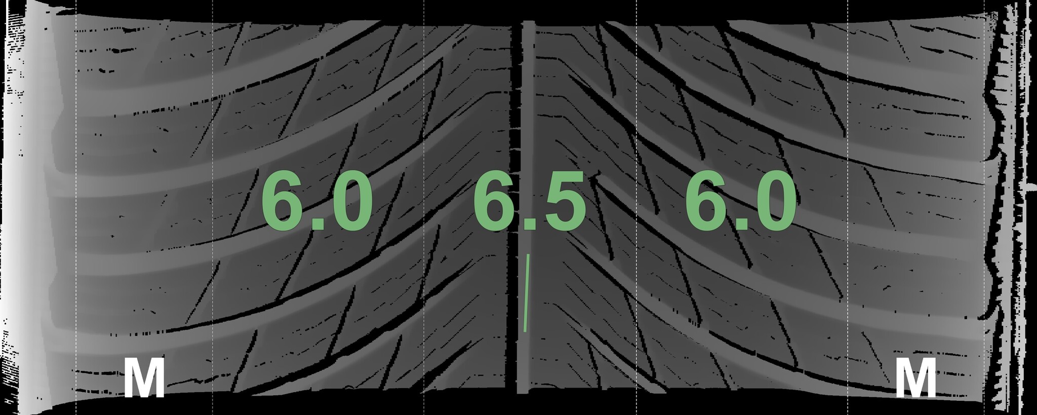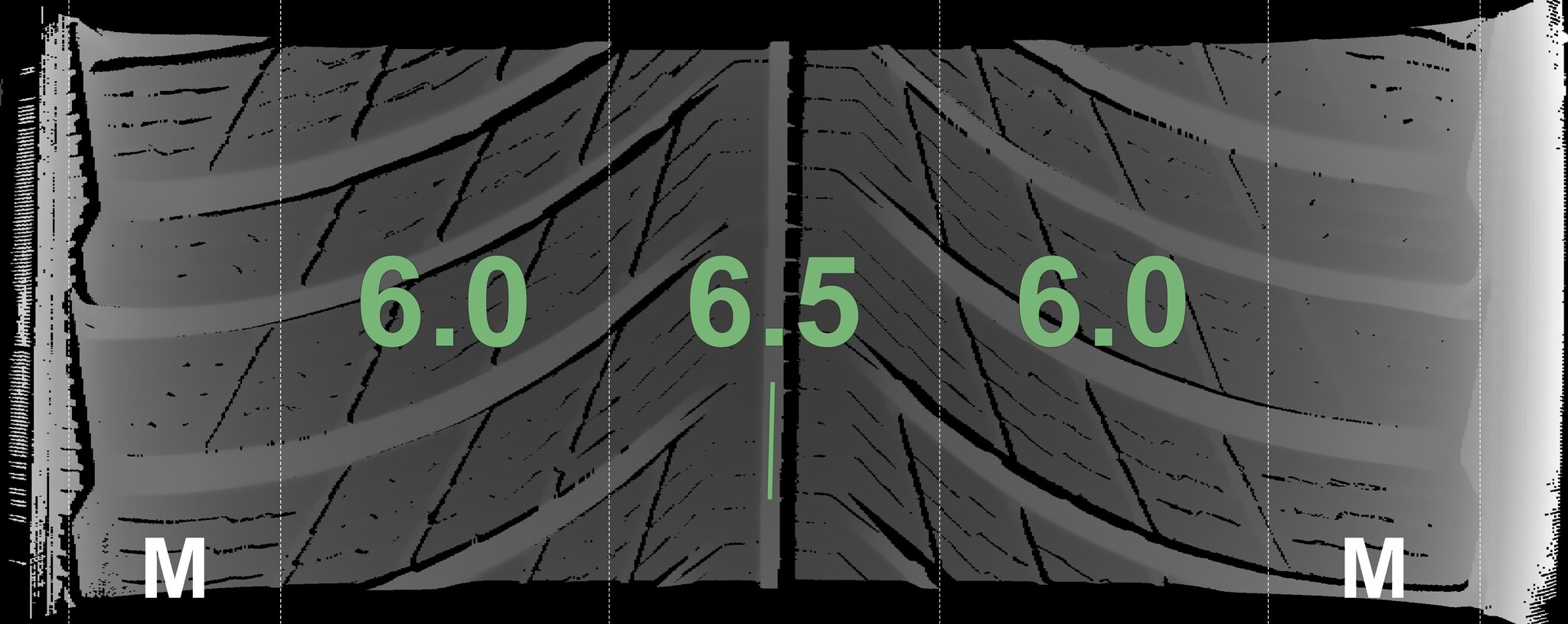 The measured tread depths and the details of the rims are shown above.