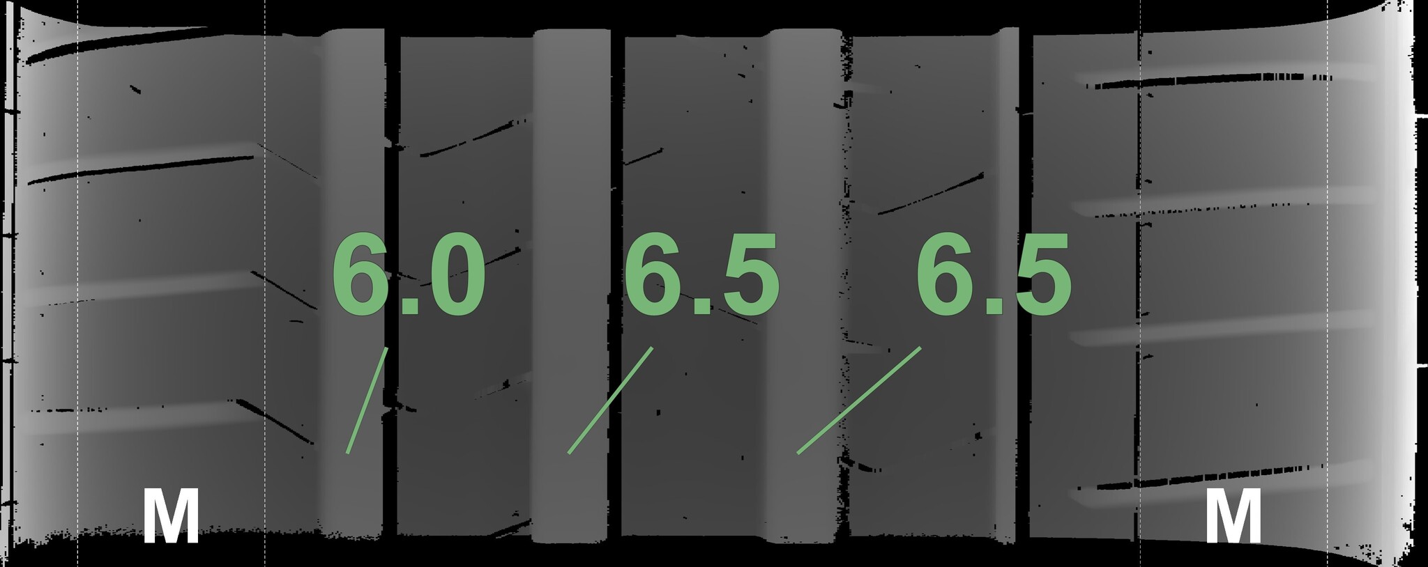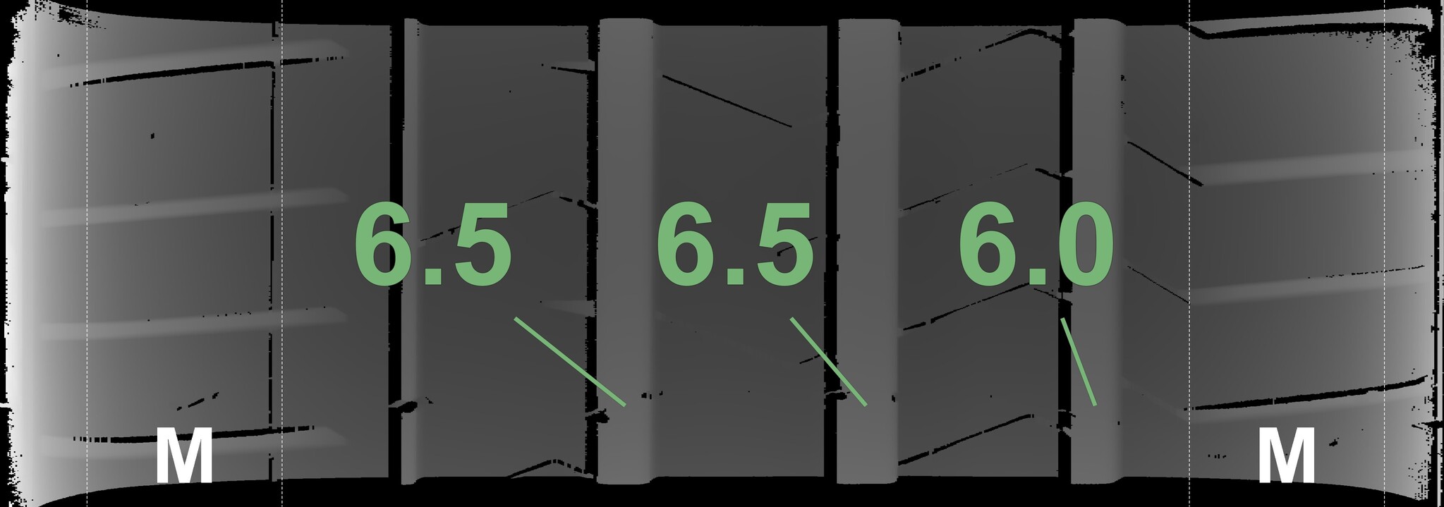 | Condition | Profile depth | DOT | Front Right | Demo nubs still visible | 6.3 mm | 5122 |