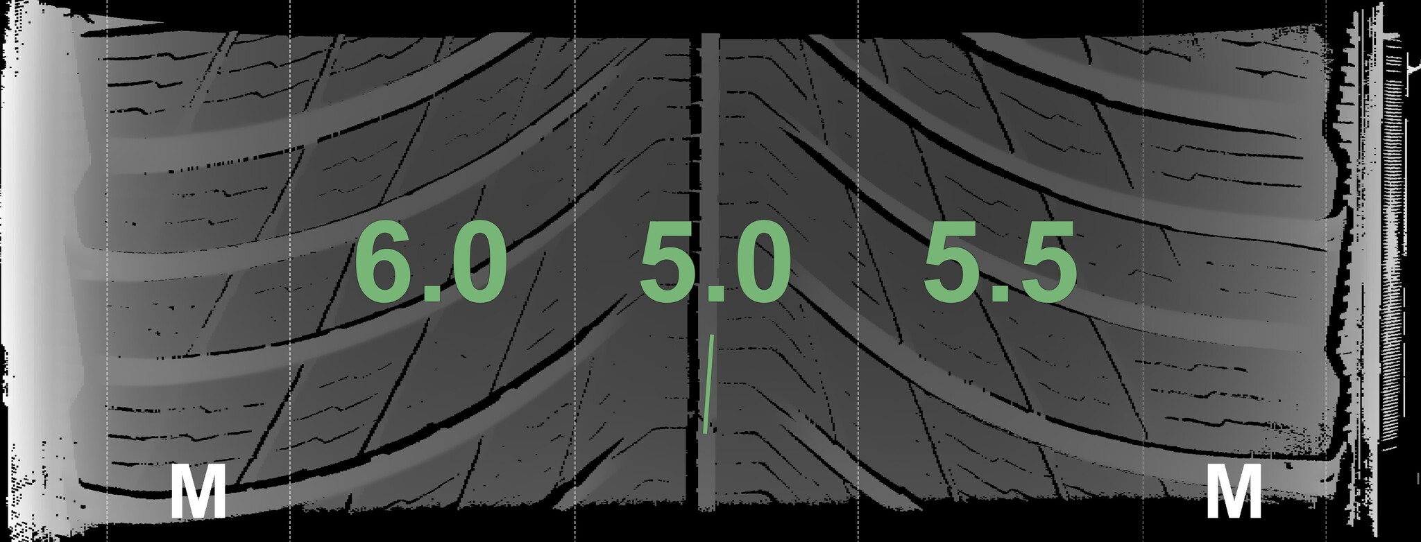 | Condition | Profile depth | DOT | Rear Left | Used | 5.0 mm | 3619 |