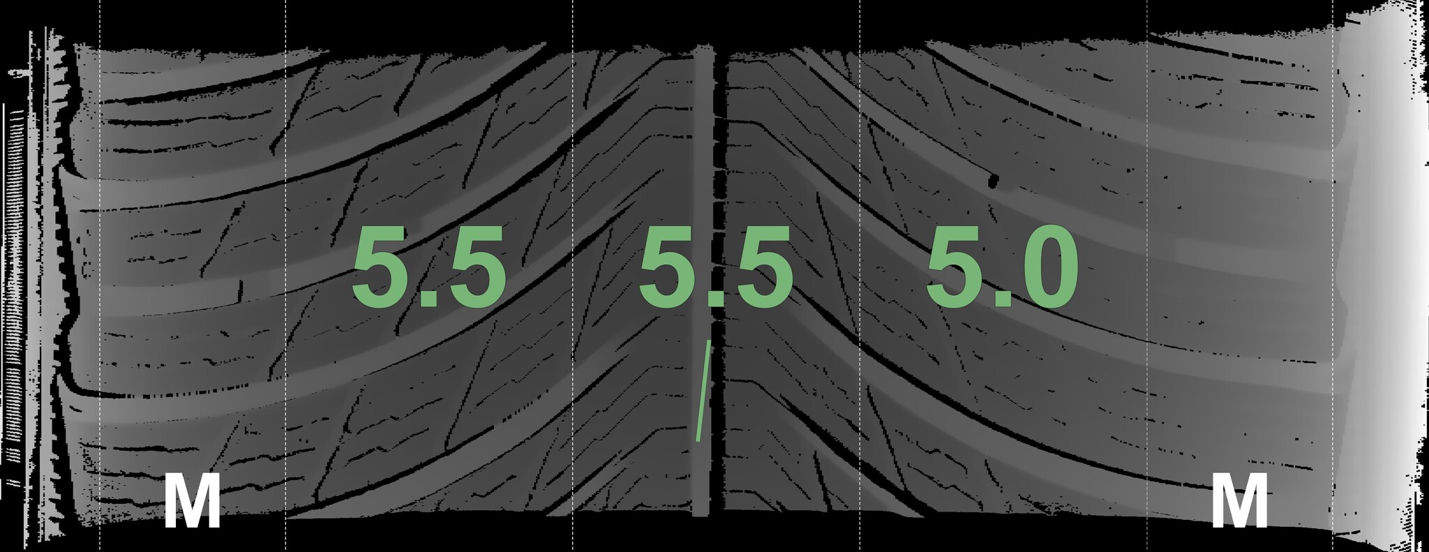 | Condition | Profile depth | DOT | Rear Right | Used | 5.0 mm | 3619 |