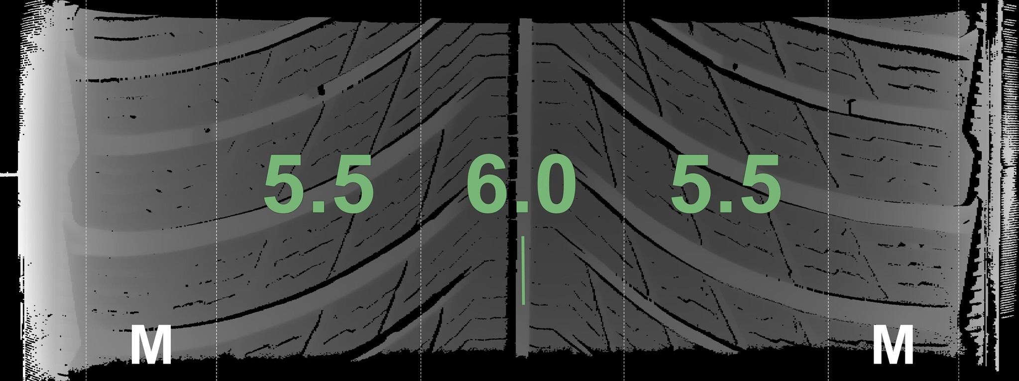 | Condition | Profile depth | DOT | Front Left | Used | 5.5 mm | 3619 |